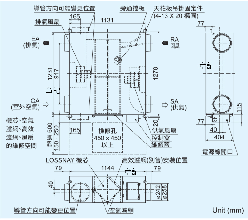 三菱(MITSUBISHI)全熱交換機(220V) LGH-100RVX3-E 尺寸圖
