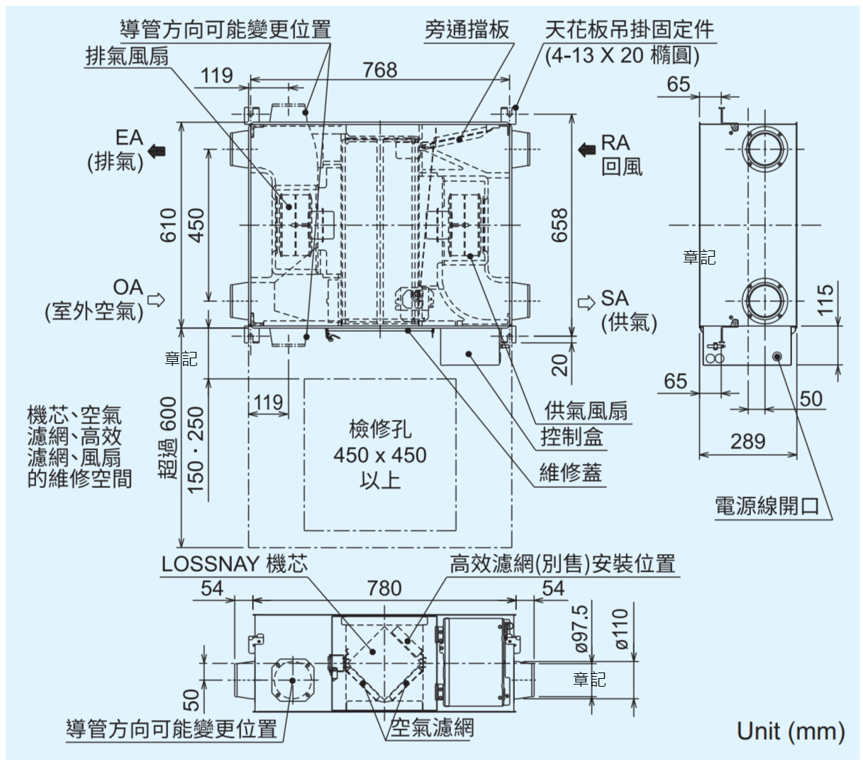 三菱(MITSUBISHI)全熱交換機(220V) LGH-15RVX3-E 尺寸圖