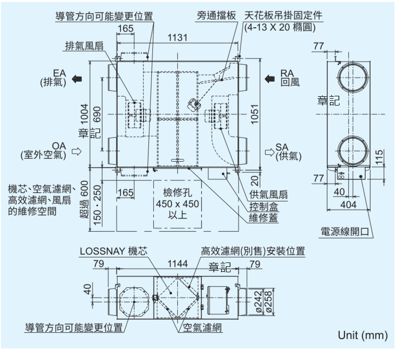 三菱(MITSUBISHI)全熱交換機(220V) LGH-80RVX3-E 尺寸圖