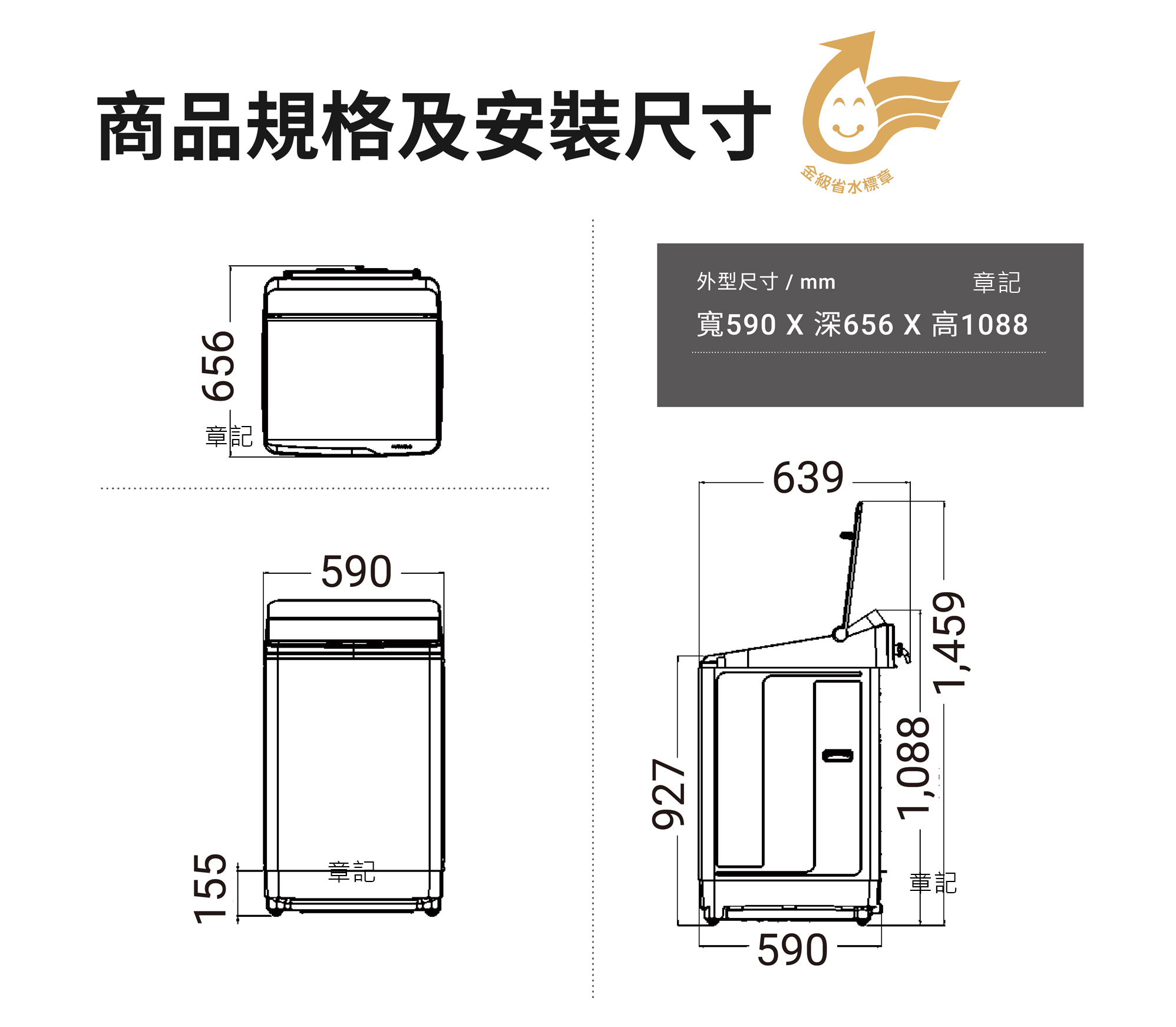HITACHI日立直立式洗衣機 LTLH3MVJWT 尺寸圖