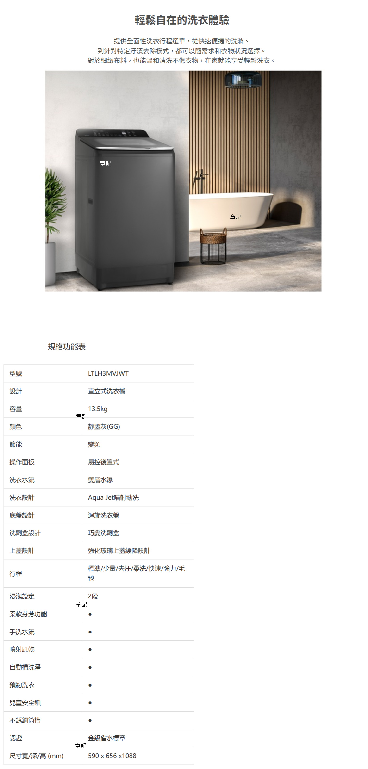 HITACHI日立直立式洗衣機 LTLH3MVJWT
