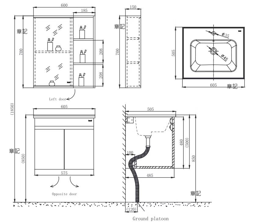 innoci藝耐 面盆浴櫃鏡櫃組(60cm) M126A1-A 尺寸圖