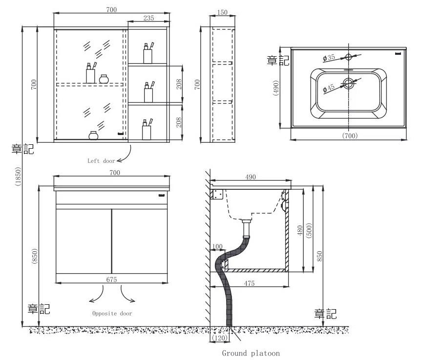 innoci藝耐 面盆浴櫃鏡櫃組(70cm) M127A1-A 尺寸圖