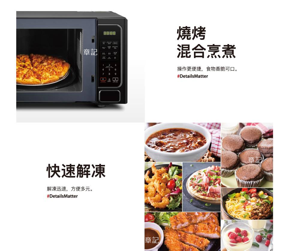 6項自動烹煮模式:爆米花、馬鈴薯、冷凍比薩、冷凍蔬菜、飲品、烤肉。
