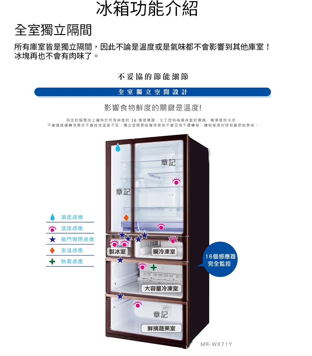 三菱(MITSUBISHI)變頻六門電冰箱(星耀黑) MR-WX71C