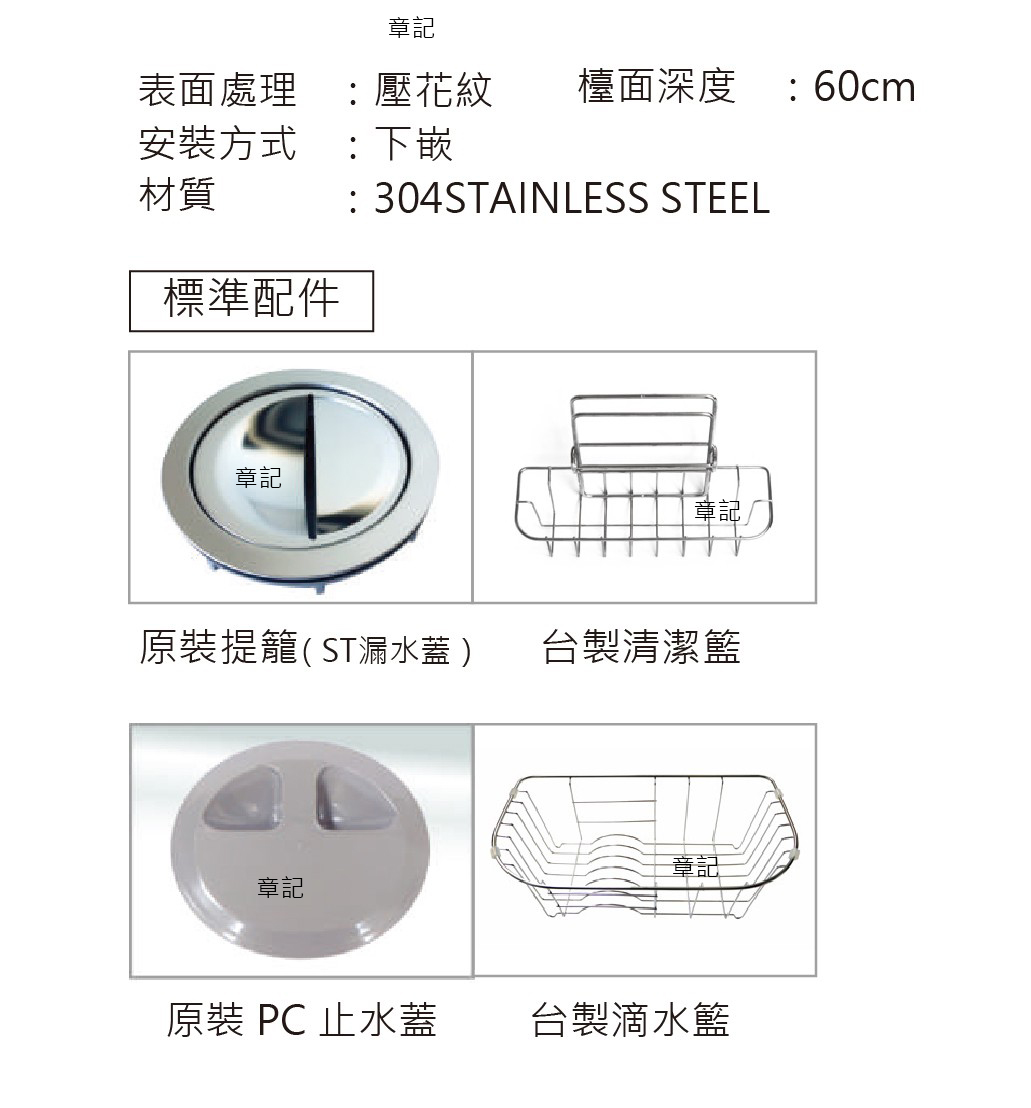 標準配件:原裝提籠、原裝止水蓋、台製清潔籃、台製滴水籃