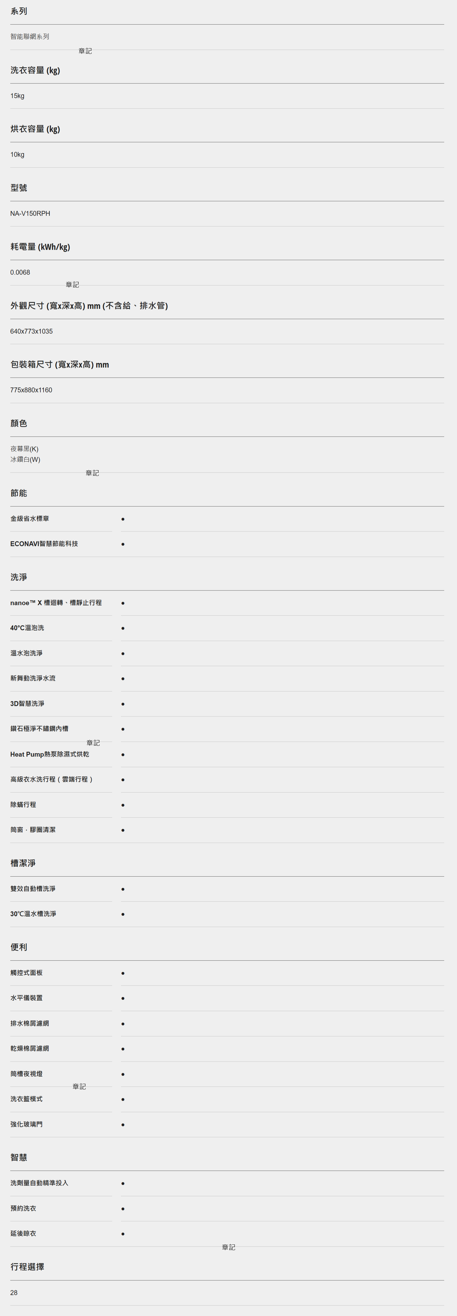Panasonic 滾筒洗衣機(夜幕黑) NA-V150RPH-B