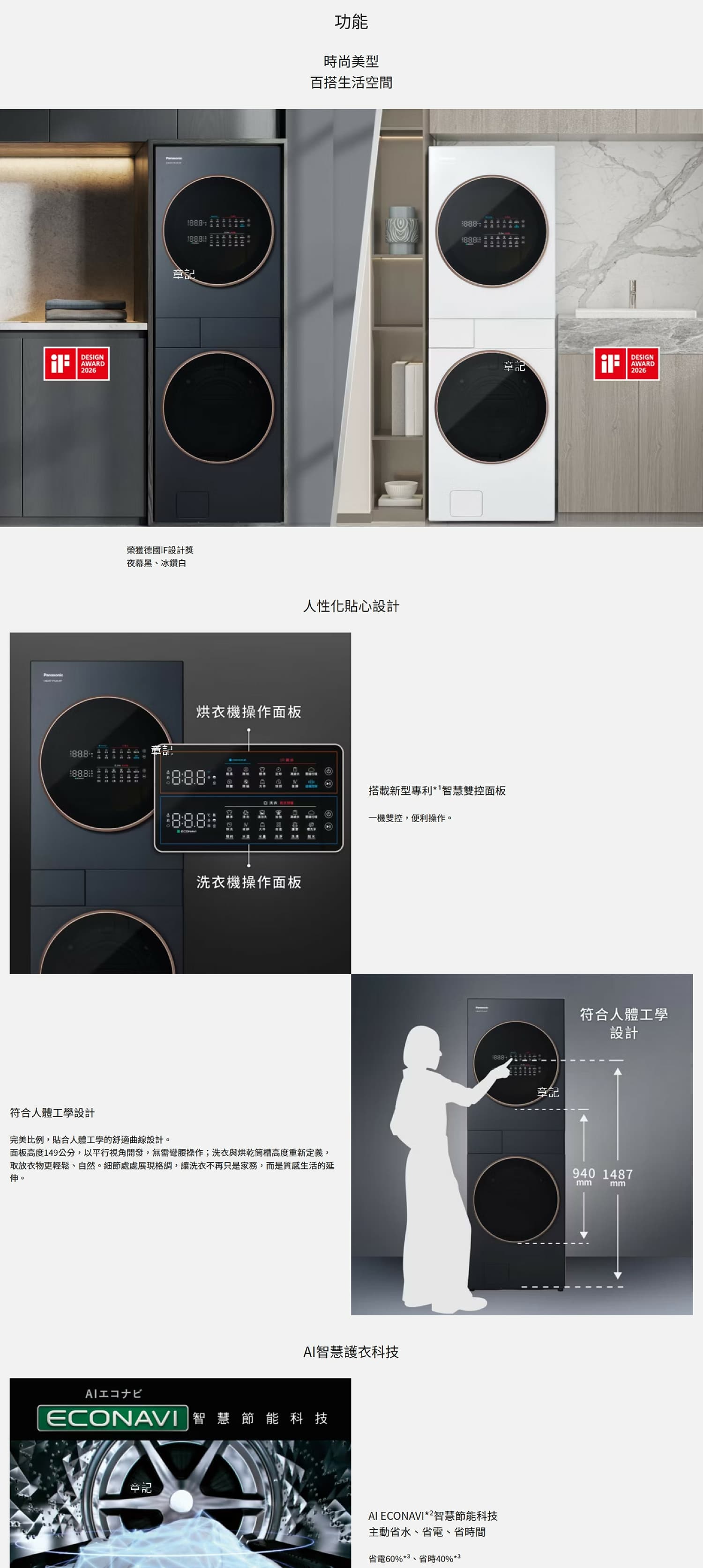 Panasonic 極簡美學設計熱泵AI智慧雙控洗烘洗衣機(夜幕黑) NA-V1515SP-K
