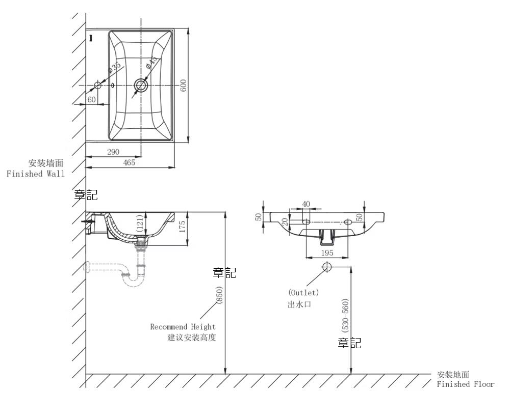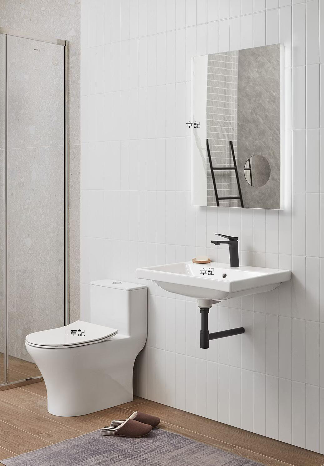 本產品僅為瓷盆,不包含情境示範用之水龍頭、排水管、浴櫃、浴鏡、馬桶等。