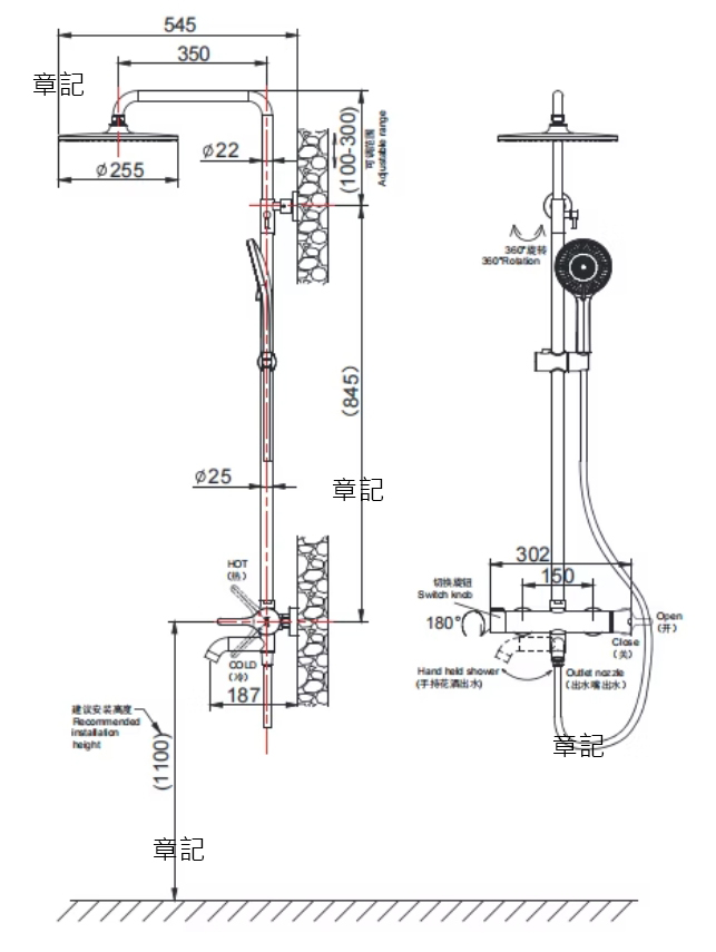 innoci藝耐 淋浴花灑組 ND2245K 尺寸圖