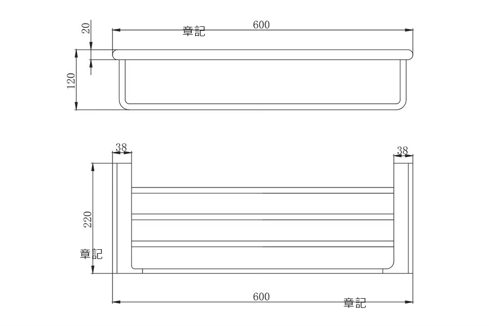innoci藝耐 雙桿毛巾架 ND7167K 尺寸圖