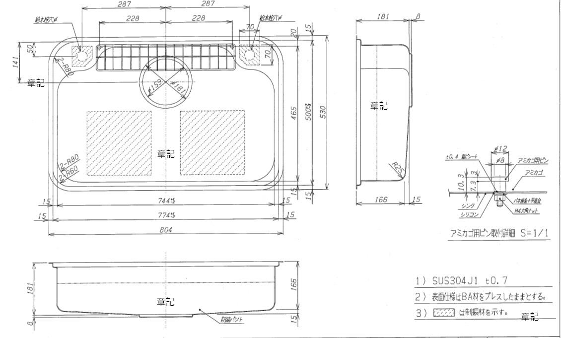 Panasonic國際牌壓花不鏽鋼水槽 NEIB-K-FSTW 尺寸圖