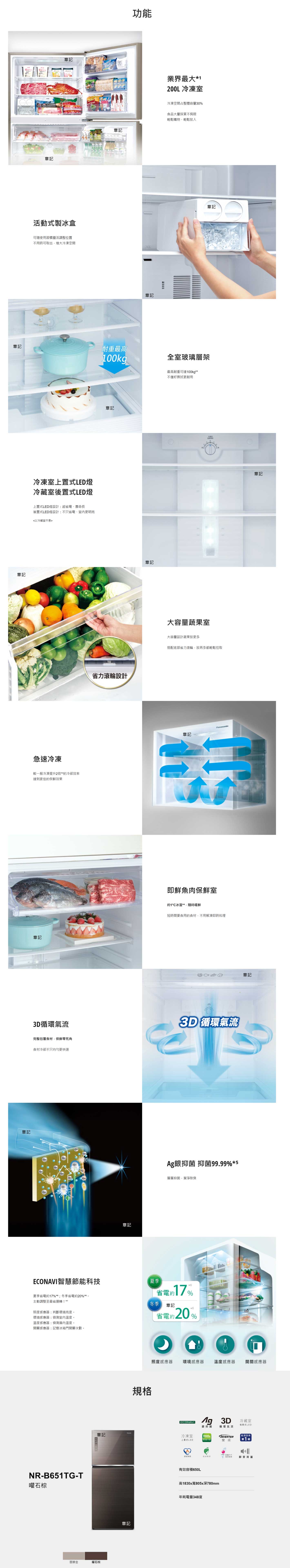 Panasonic 無邊框玻璃電冰箱(曜石棕) NR-B651TG-T 尺寸圖