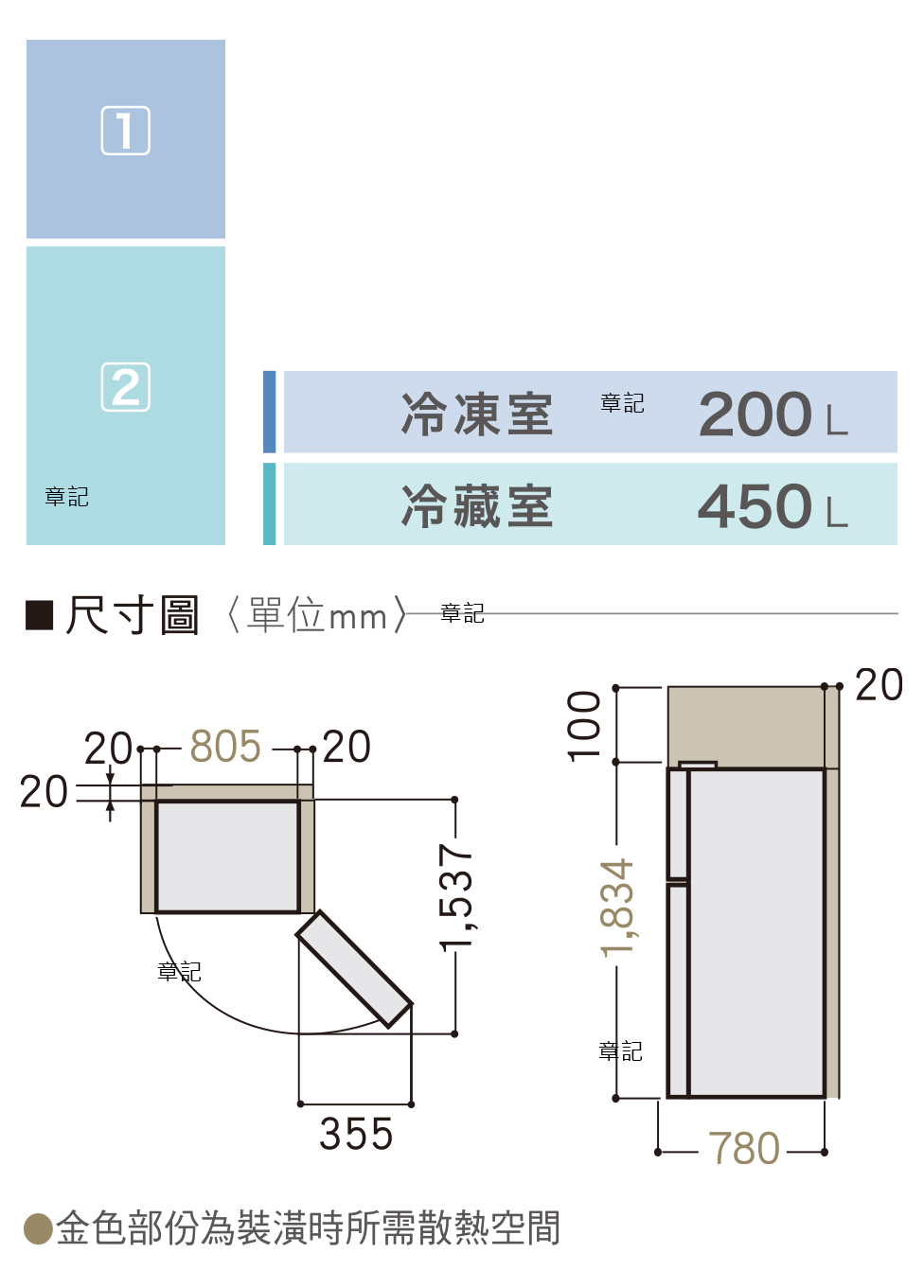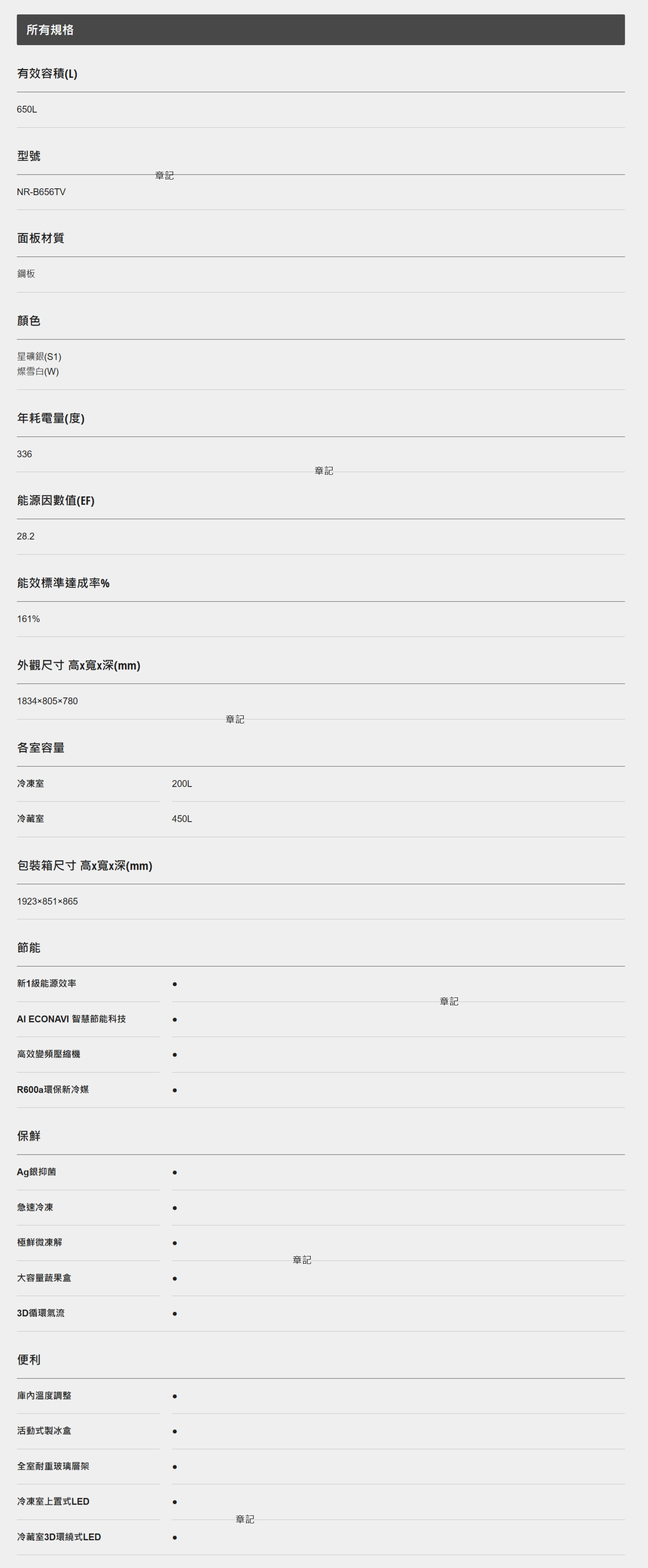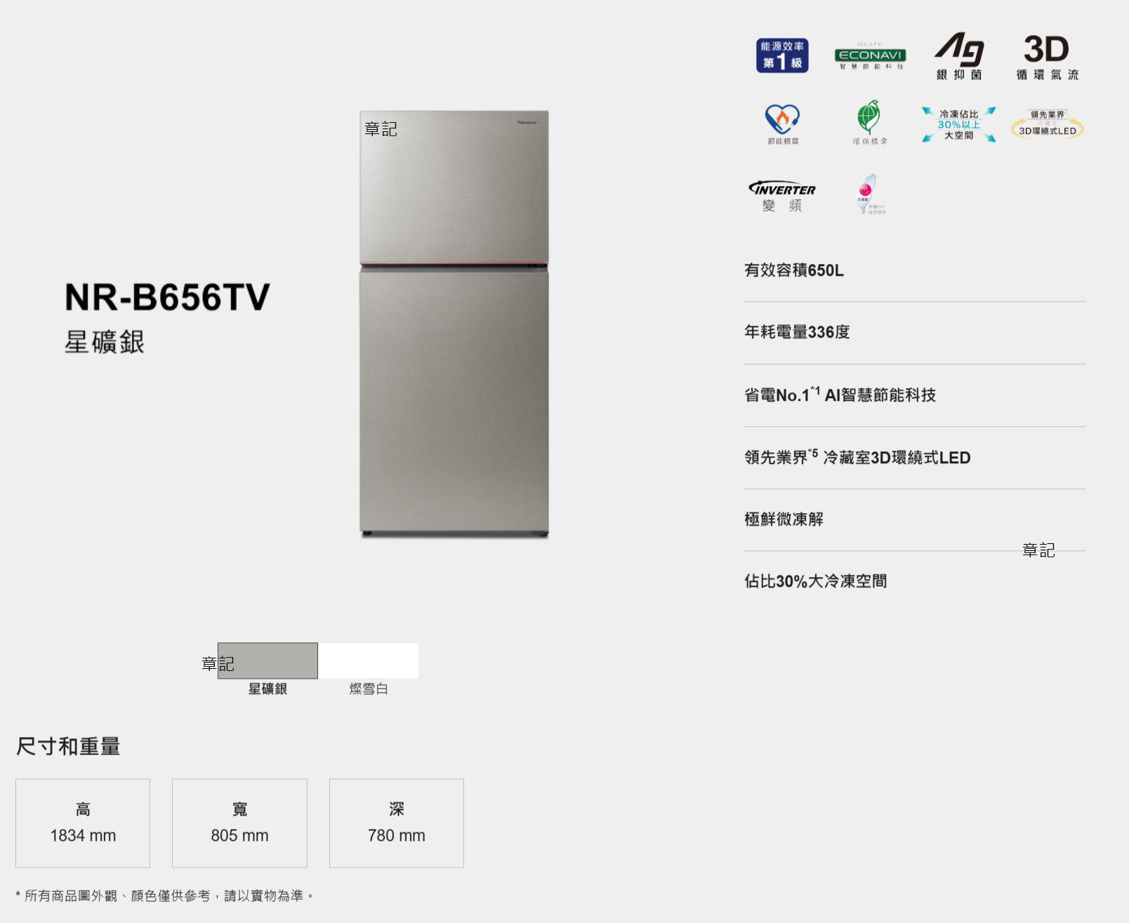 Panasonic 無邊框鋼板電冰箱(星礦銀) NR-B656TV-S1 尺寸圖