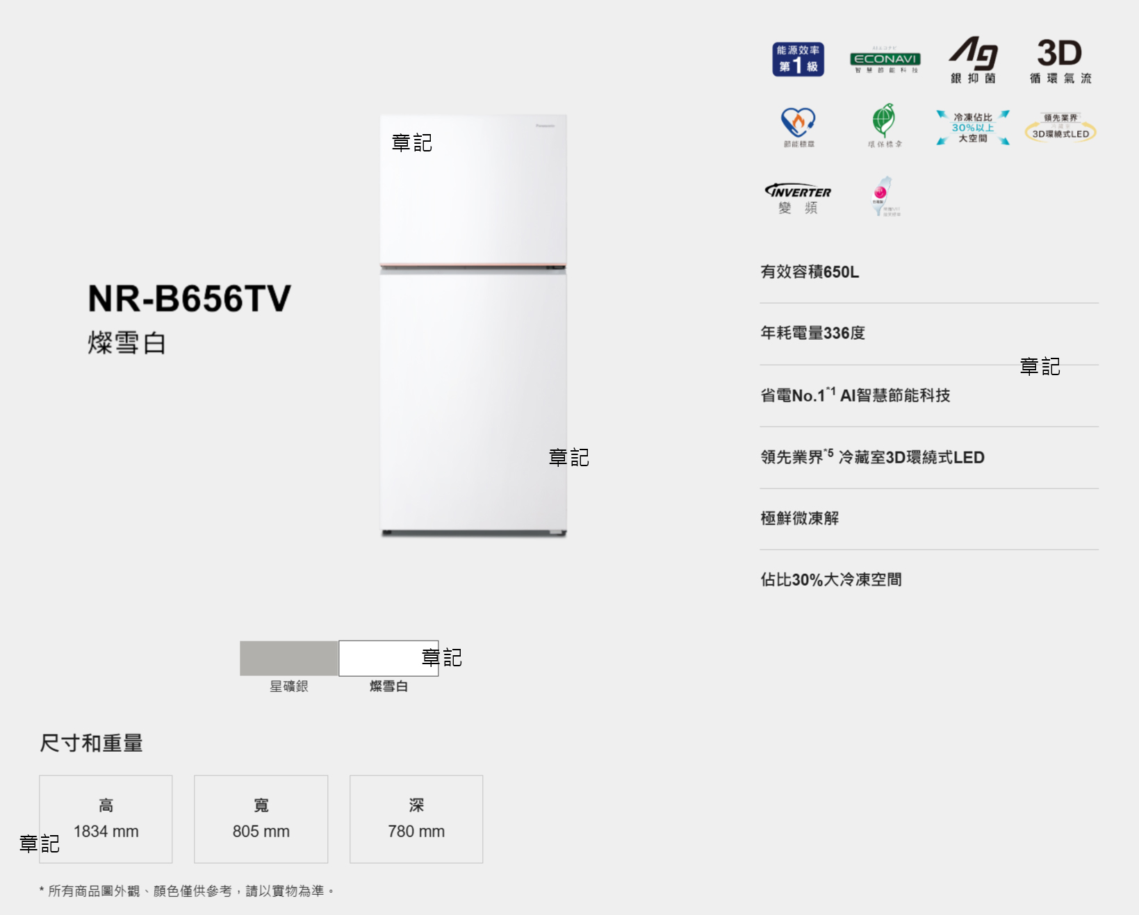 Panasonic 無邊框鋼板電冰箱(燦雪白) NR-B656TV-W