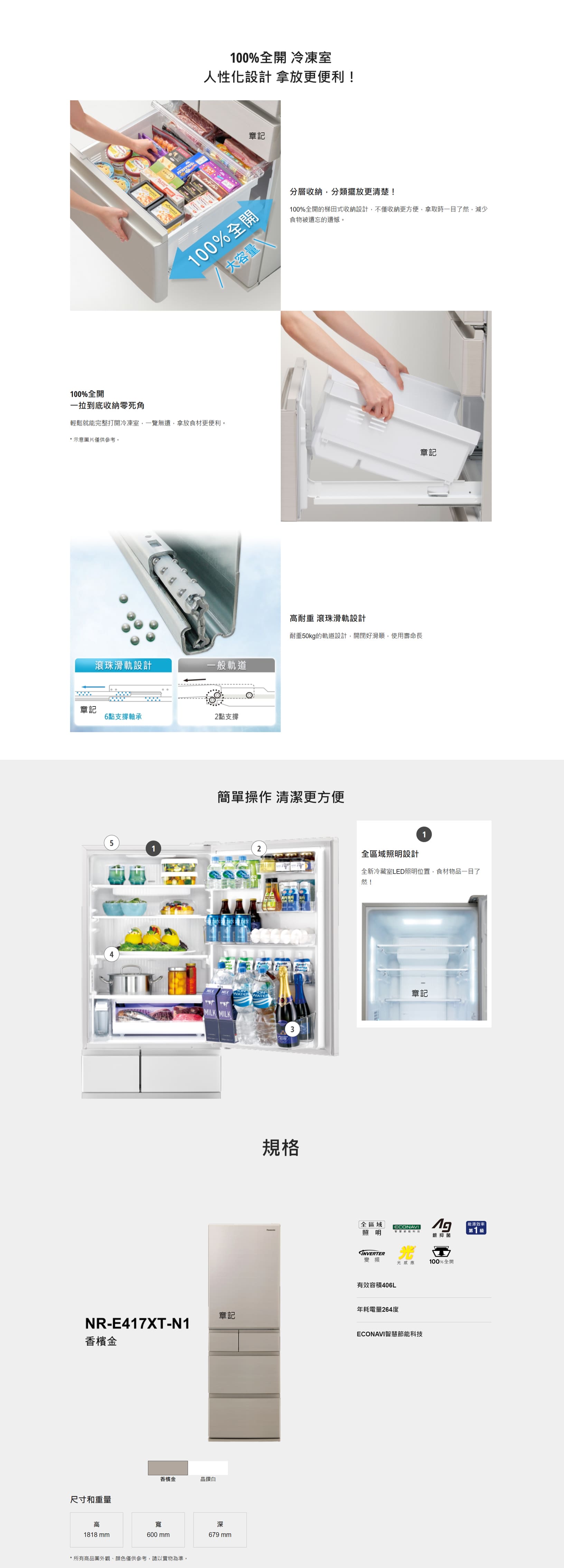 Panasonic 五門鋼板電冰箱(香檳金) NR-E417XT-N1