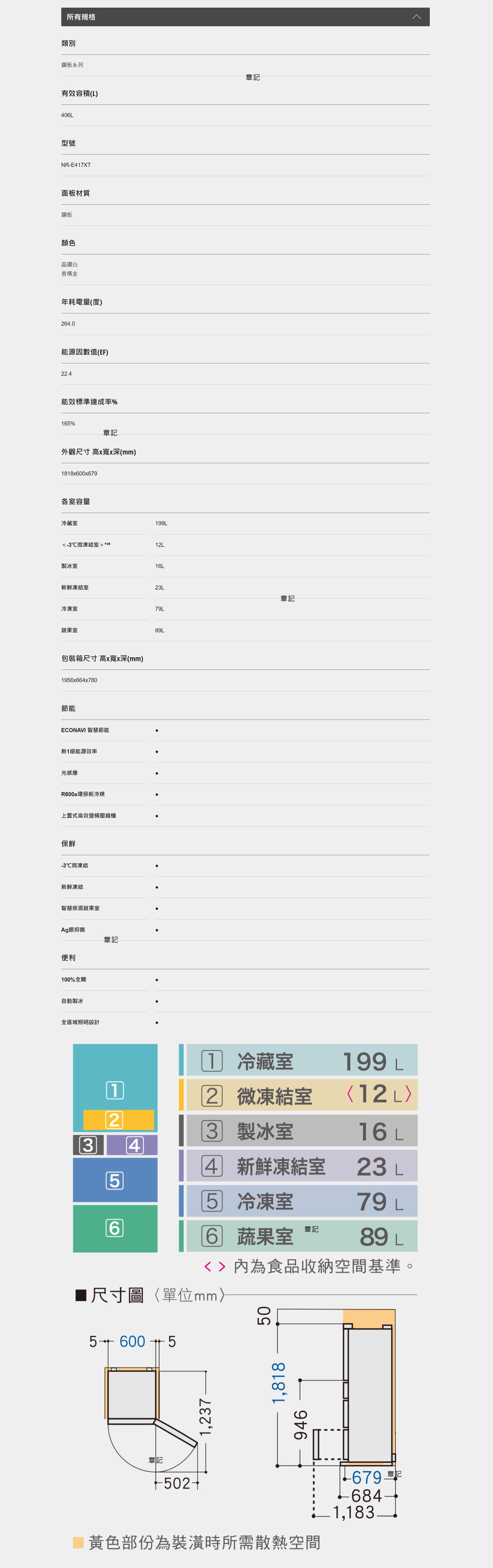 有效容積(L):406L