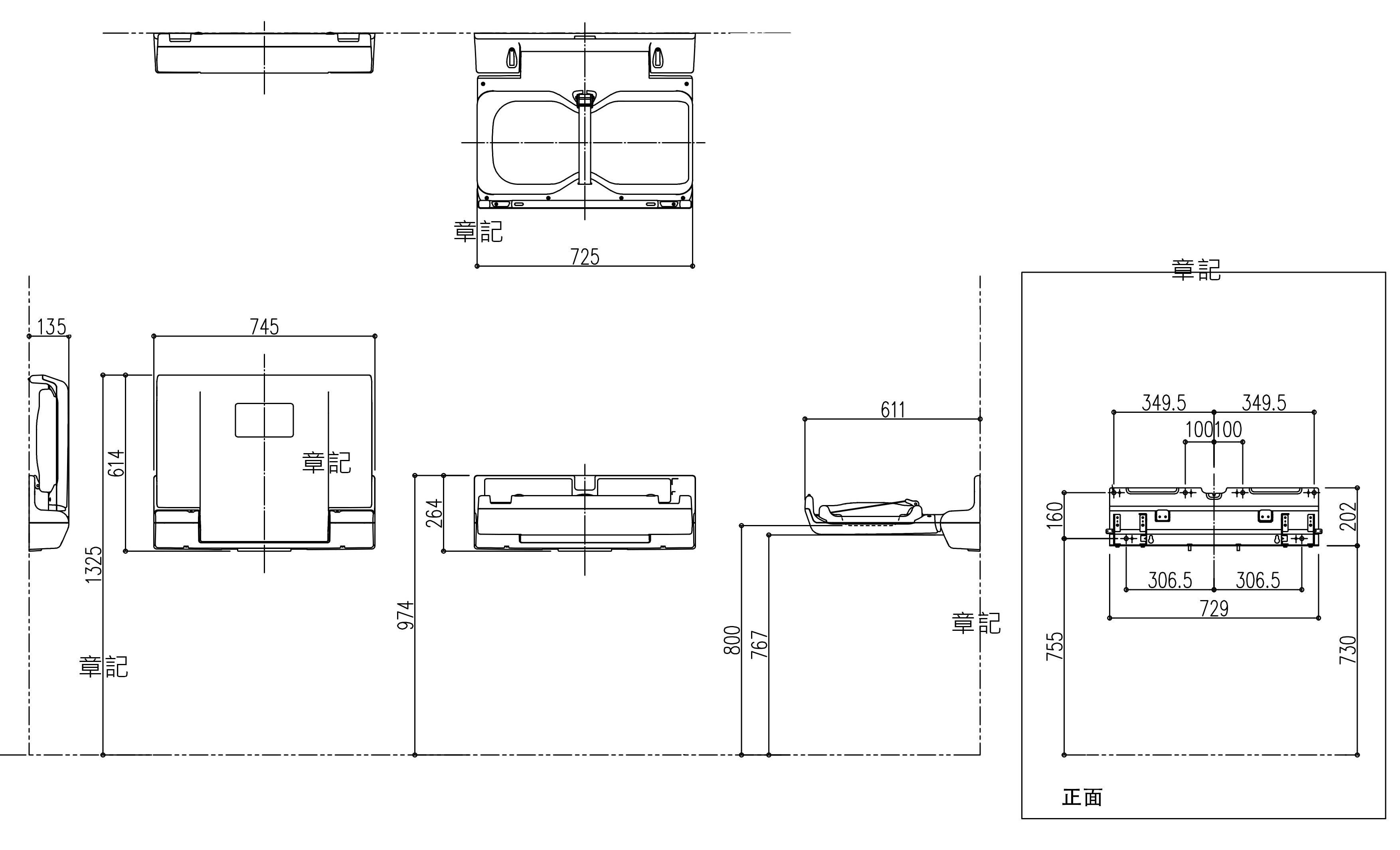 關閉時尺寸:W 745 x D 135 x H 614 mm