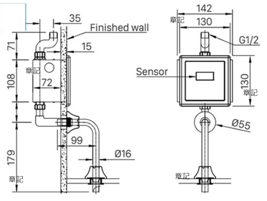 INAX 埋入式感應沖水閥 OKUV-30SM 尺寸圖