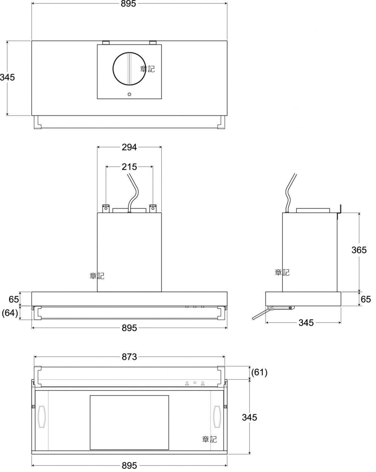 PRIMY 全隱藏排油煙機(90cm) PR-945HKN 尺寸圖
