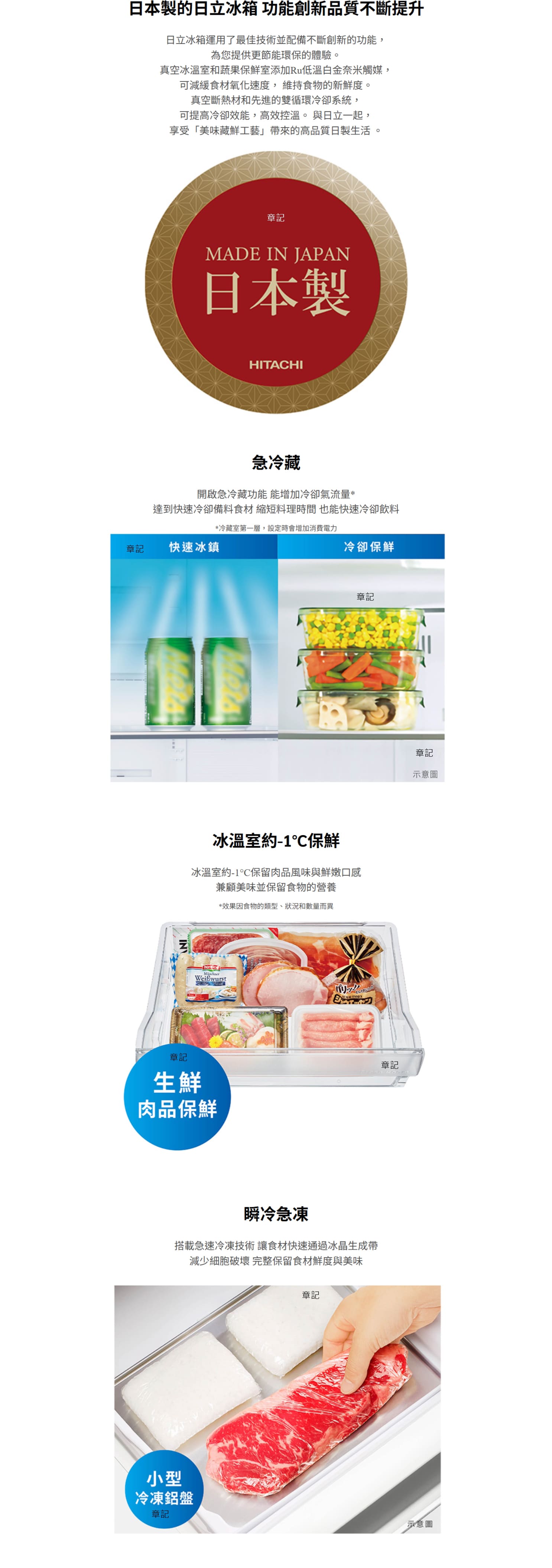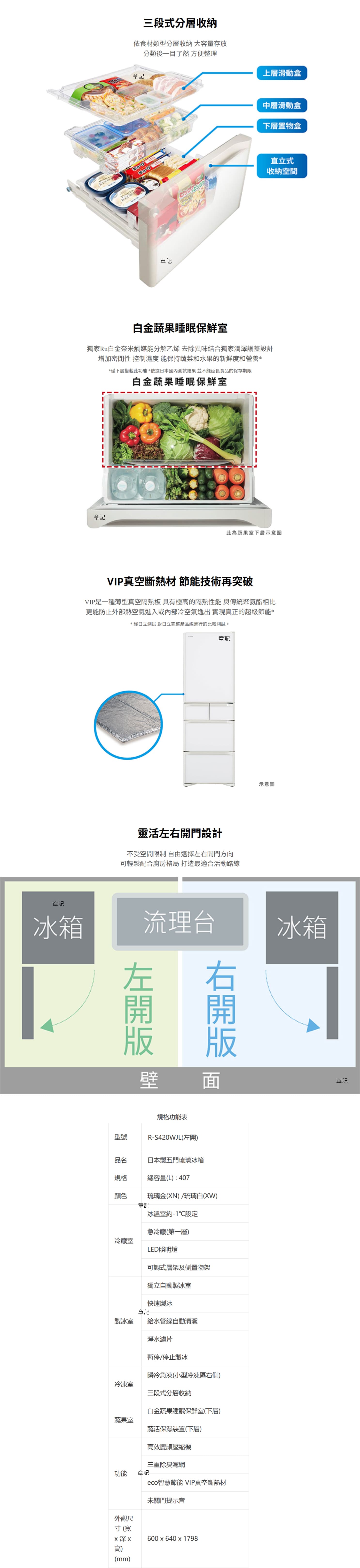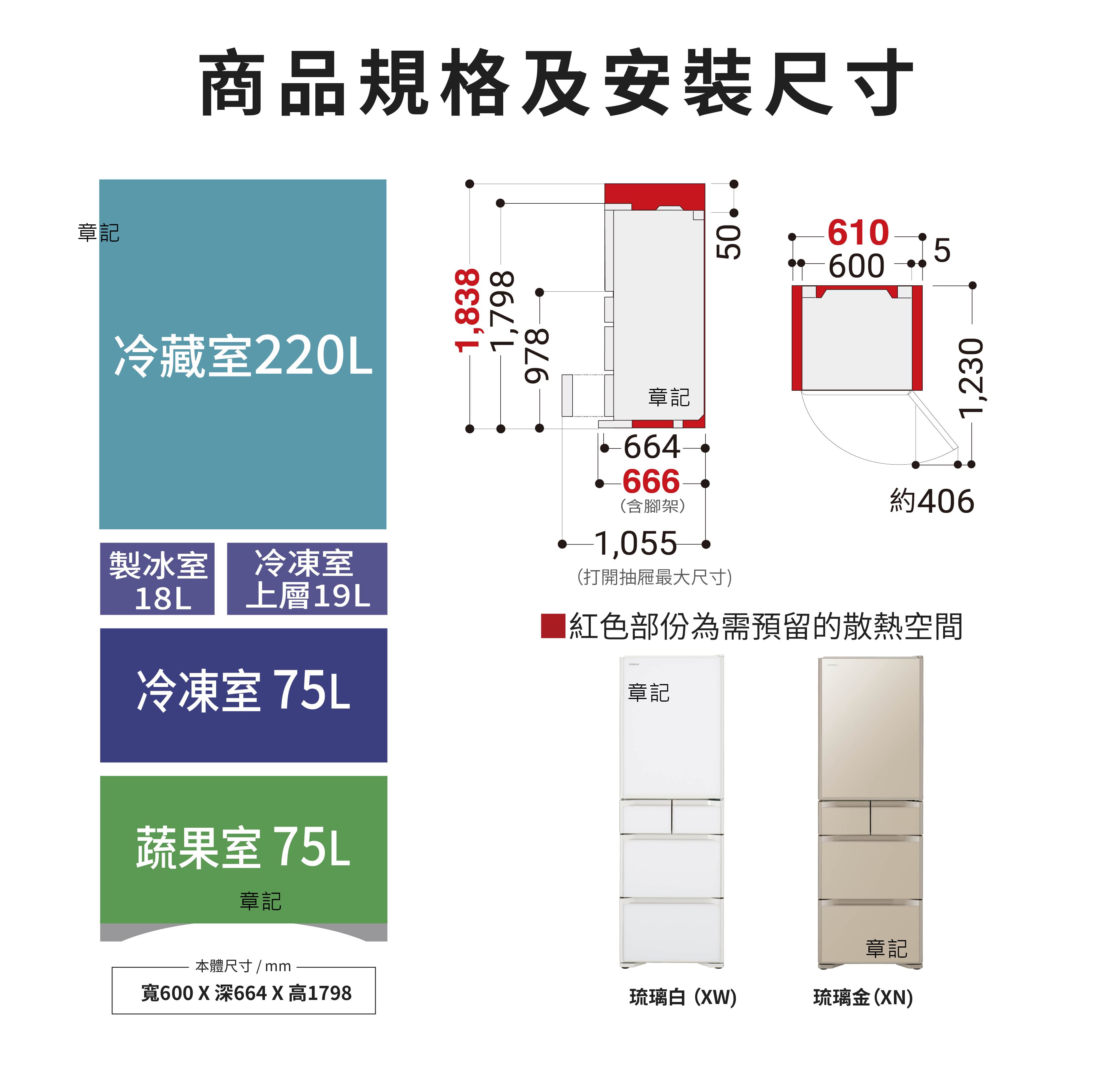 HITACHI 日立五門琉璃左開特仕版獨立式冰箱(琉璃白) R-S420WJL-XW 尺寸圖