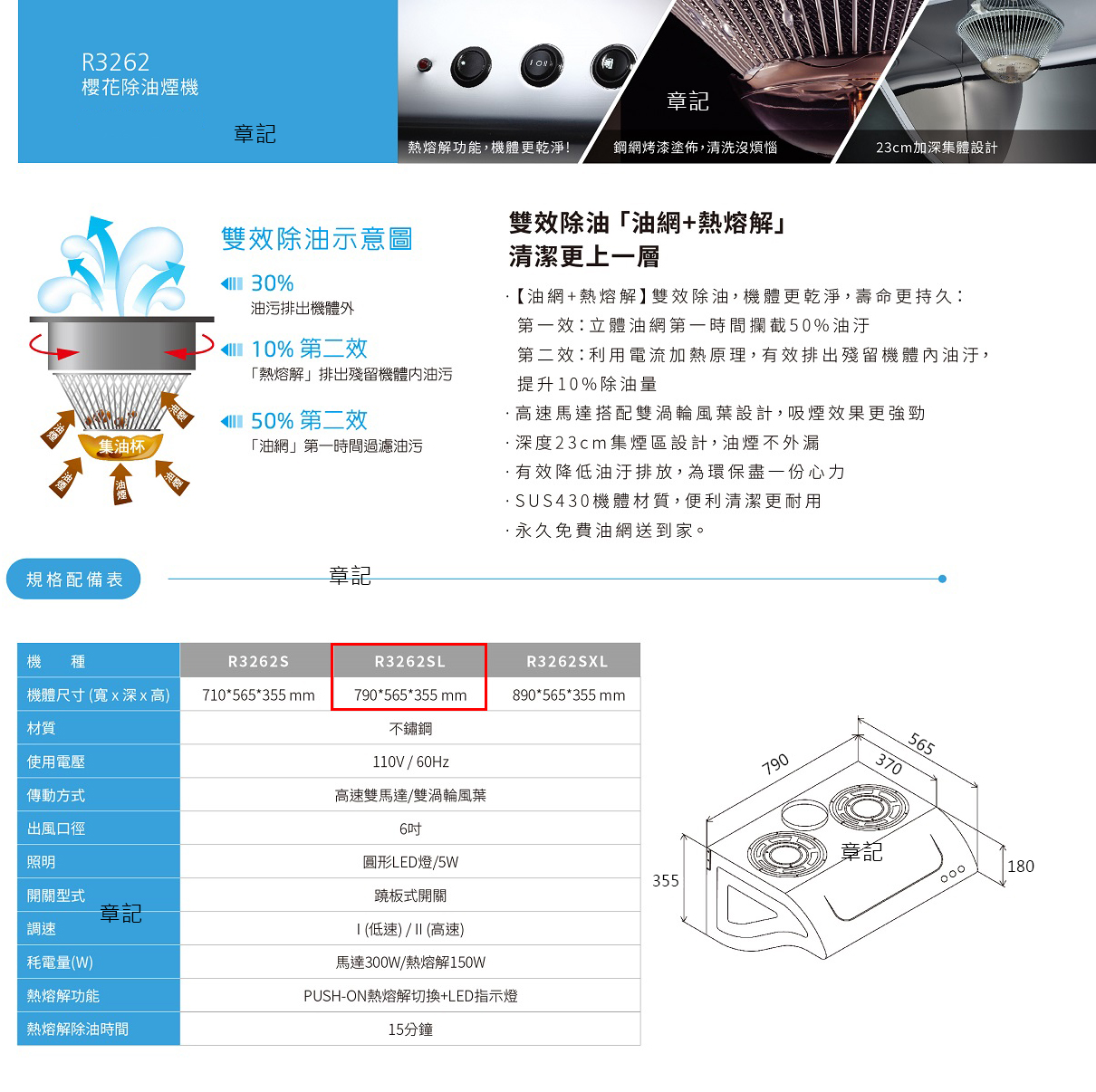 櫻花牌(SAKURA)斜背式除油煙機(79cm) R3262SL 規格
