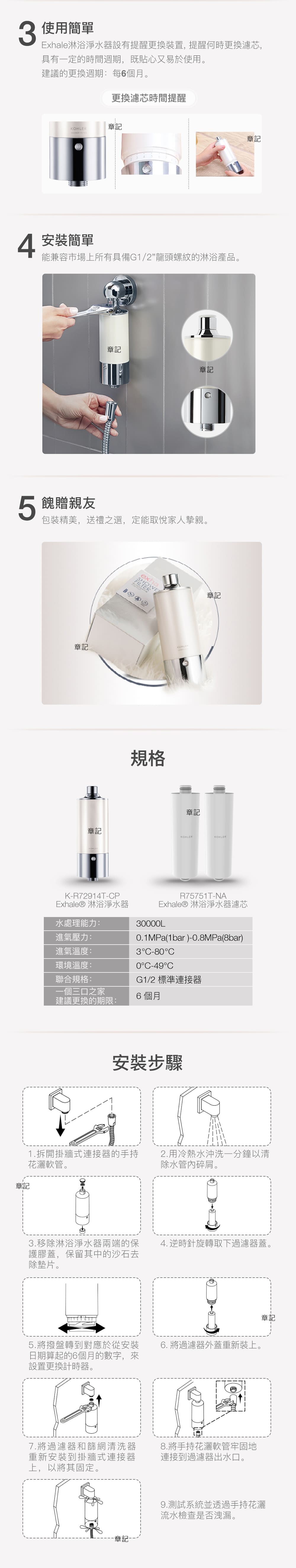 KOHLER Exhale 沐浴軟水過濾器+濾心組合 R72914T-CP_R75751T-NA