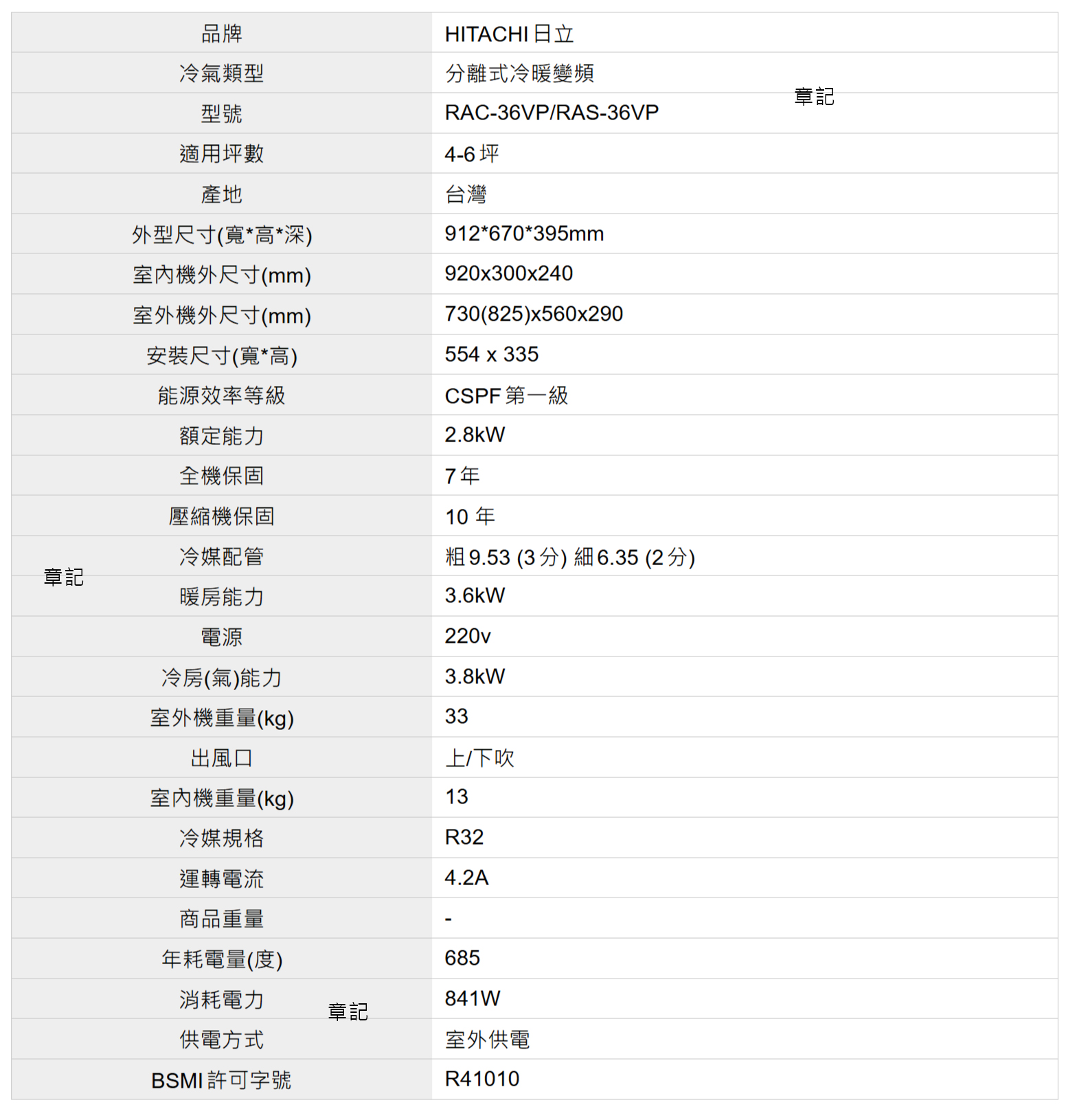 HITACHI日立變頻冷暖分離式冷氣 RAC-36VP_RAS-36VP
