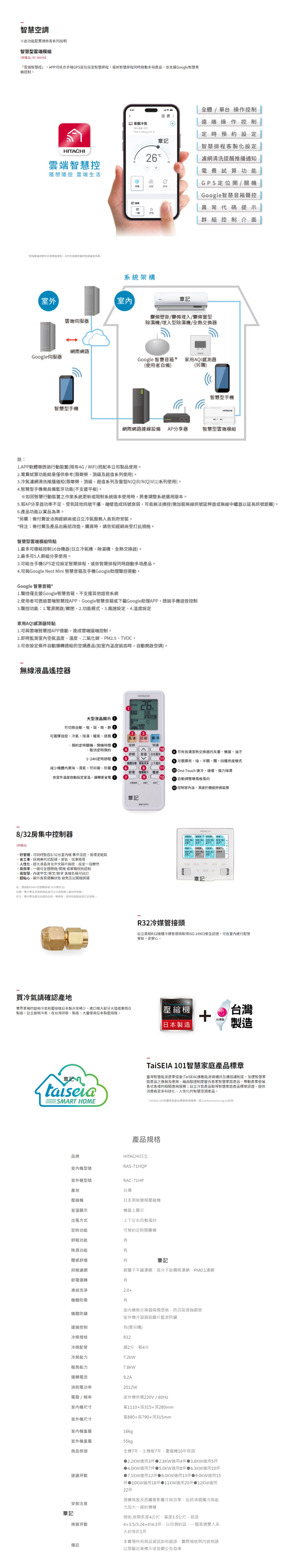 HITACHI日立變頻冷暖分離式冷氣 RAS-71HQP_RAC-71HP