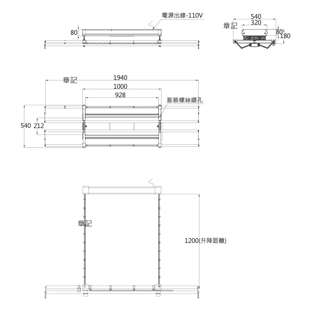 凱撒(CAESAR)無線遙控電動曬衣架-基本款 RC010 尺寸圖