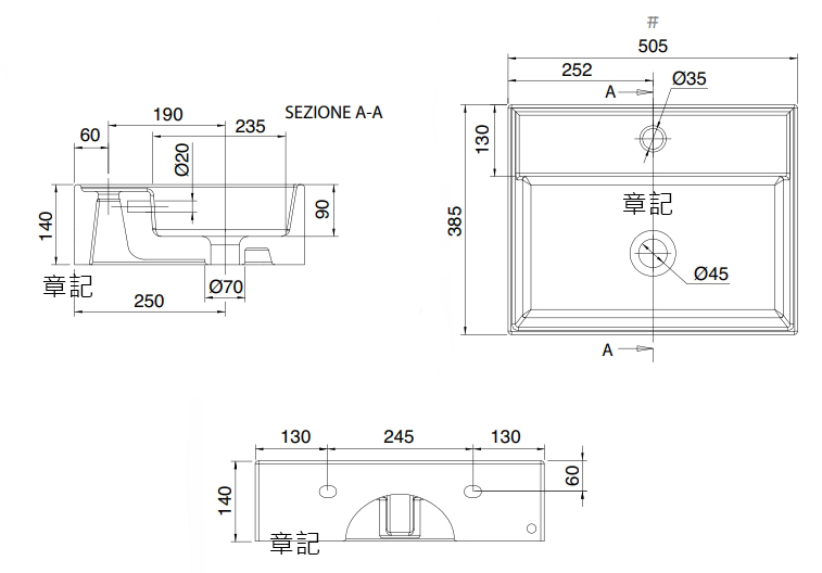 SCARABEO Teorema 2.0 檯面盆(50.5cm) SB-5111-WHT 尺寸圖