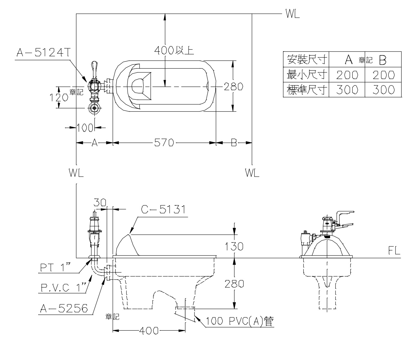 馬桶尺寸:570×280×410 mm