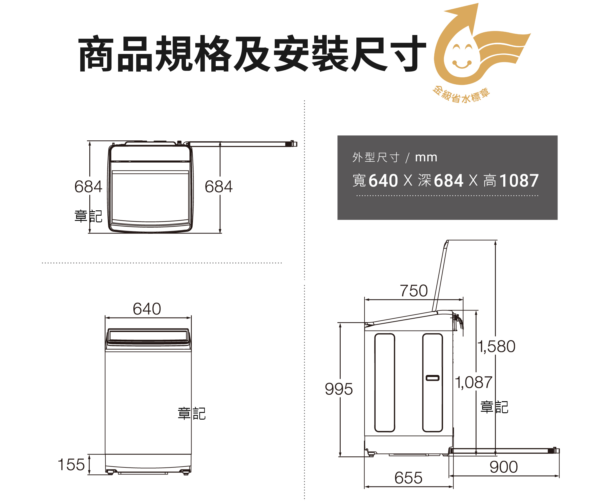 HITACHI日立直立式洗衣機 SF150THV 尺寸圖