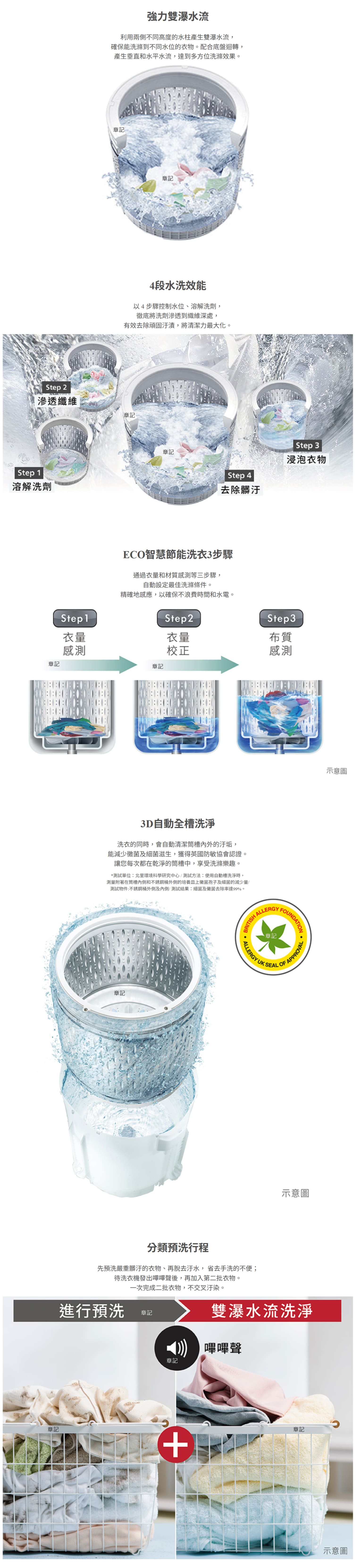 AI 智能感測洗衣|3D自動全槽清水洗淨