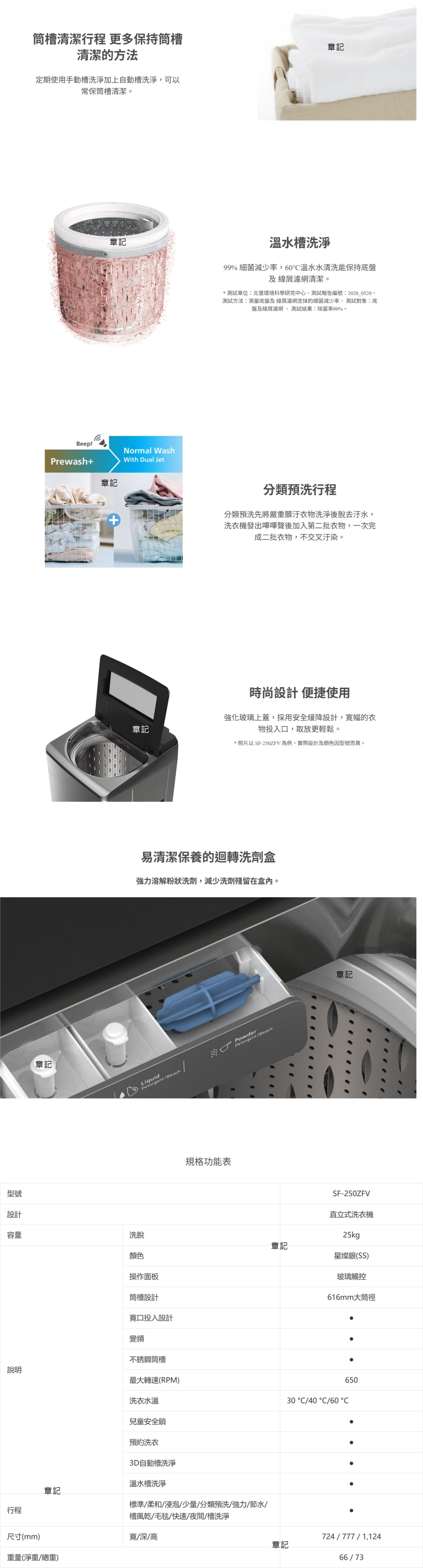 HITACHI日立直立式洗衣機 SF250ZFV 尺寸圖