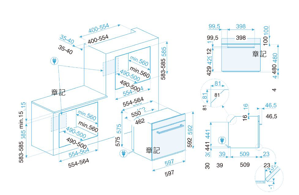 smeg 高熱壓旋風烤箱 SF64M3TB 尺寸圖