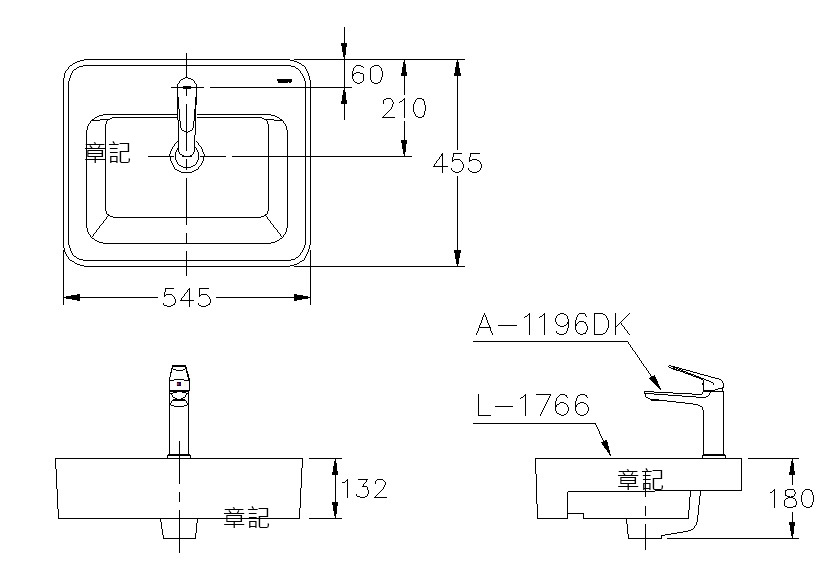 電光牌(TENCO)半嵌檯面盆附龍頭(54.5cm) SL1766-AG 尺寸圖