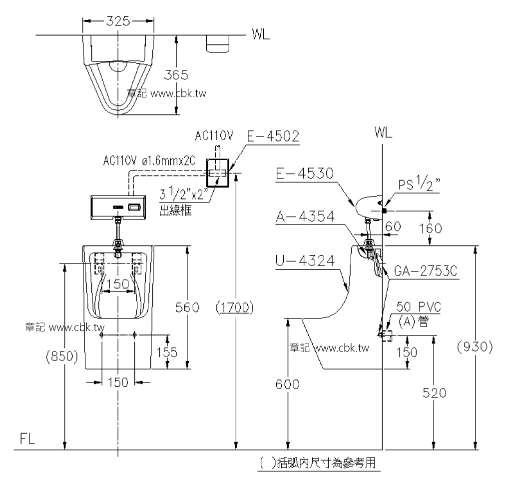 便斗尺寸:325×365×560 mm