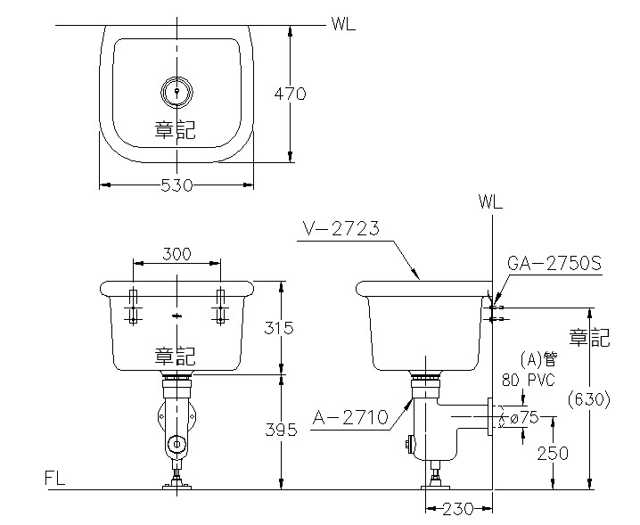 電光牌(TENCO)平緣拖布盆設備(53cm) SV2723AP 尺寸圖