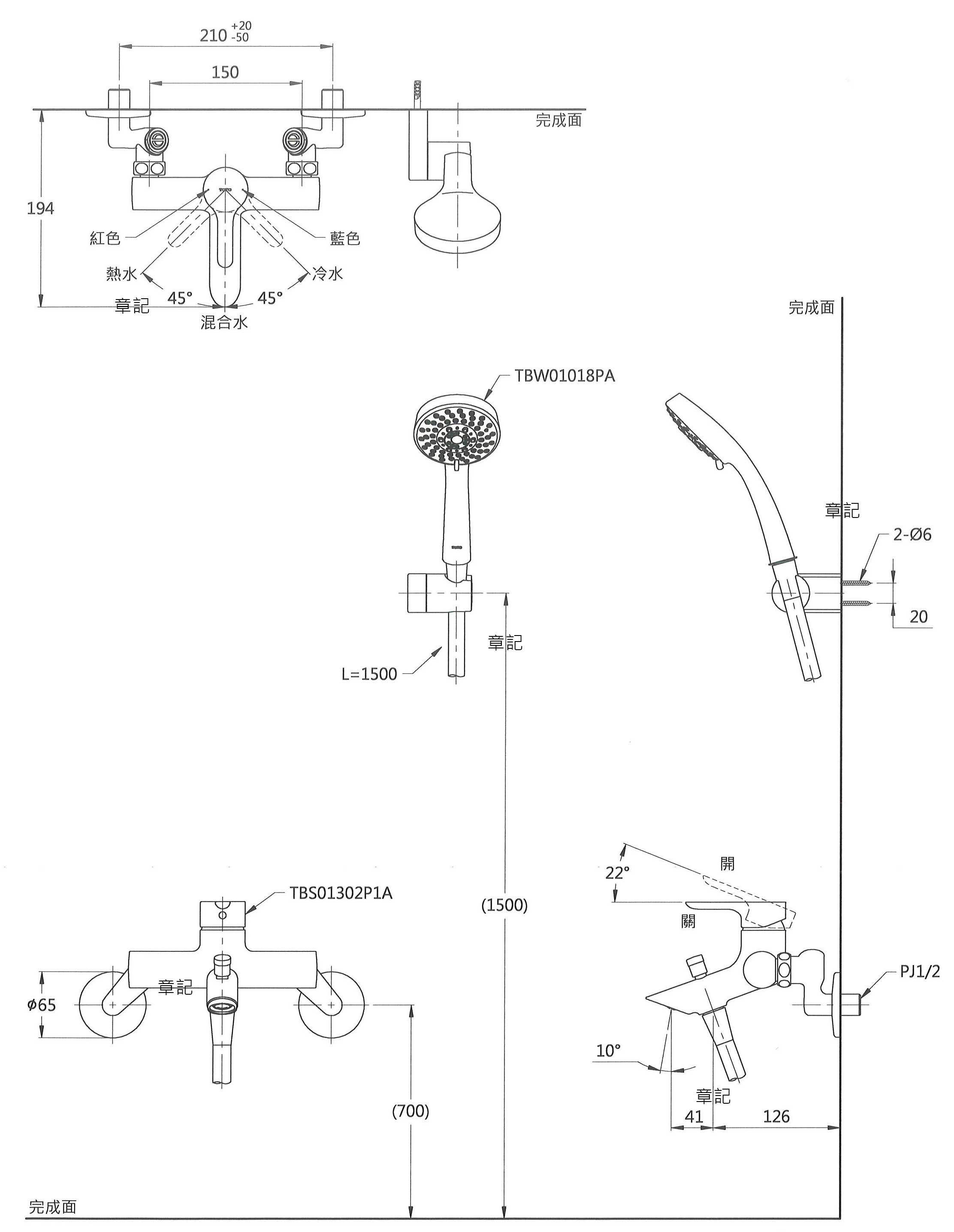 TOTO 沐浴龍頭 TBS01302P1A-S1 尺寸圖
