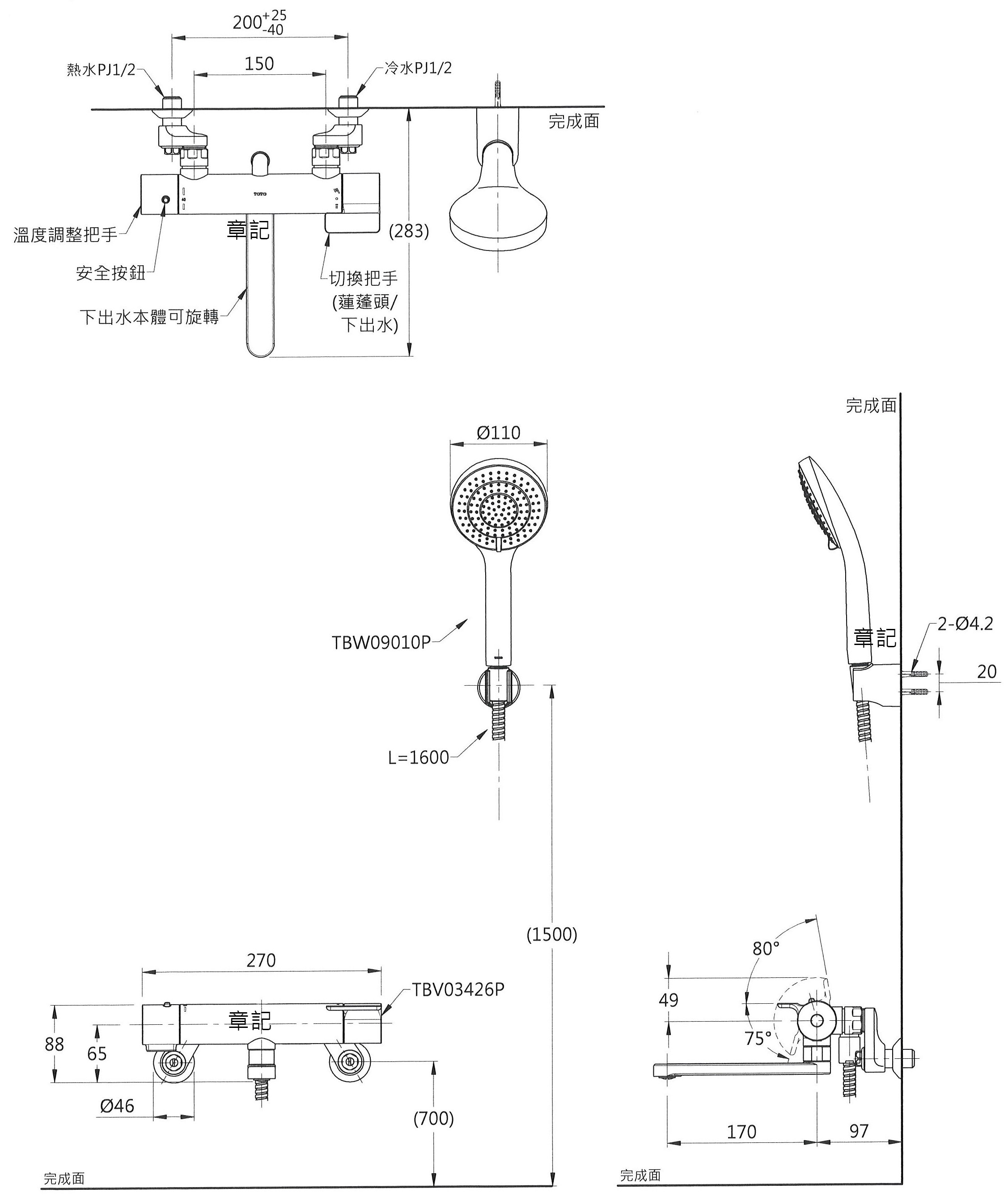 TOTO 沐浴龍頭 TBV03426P-S3 尺寸圖