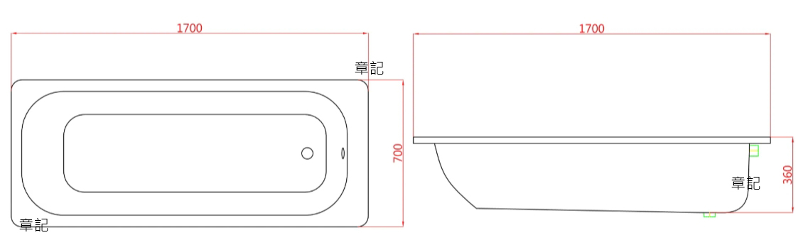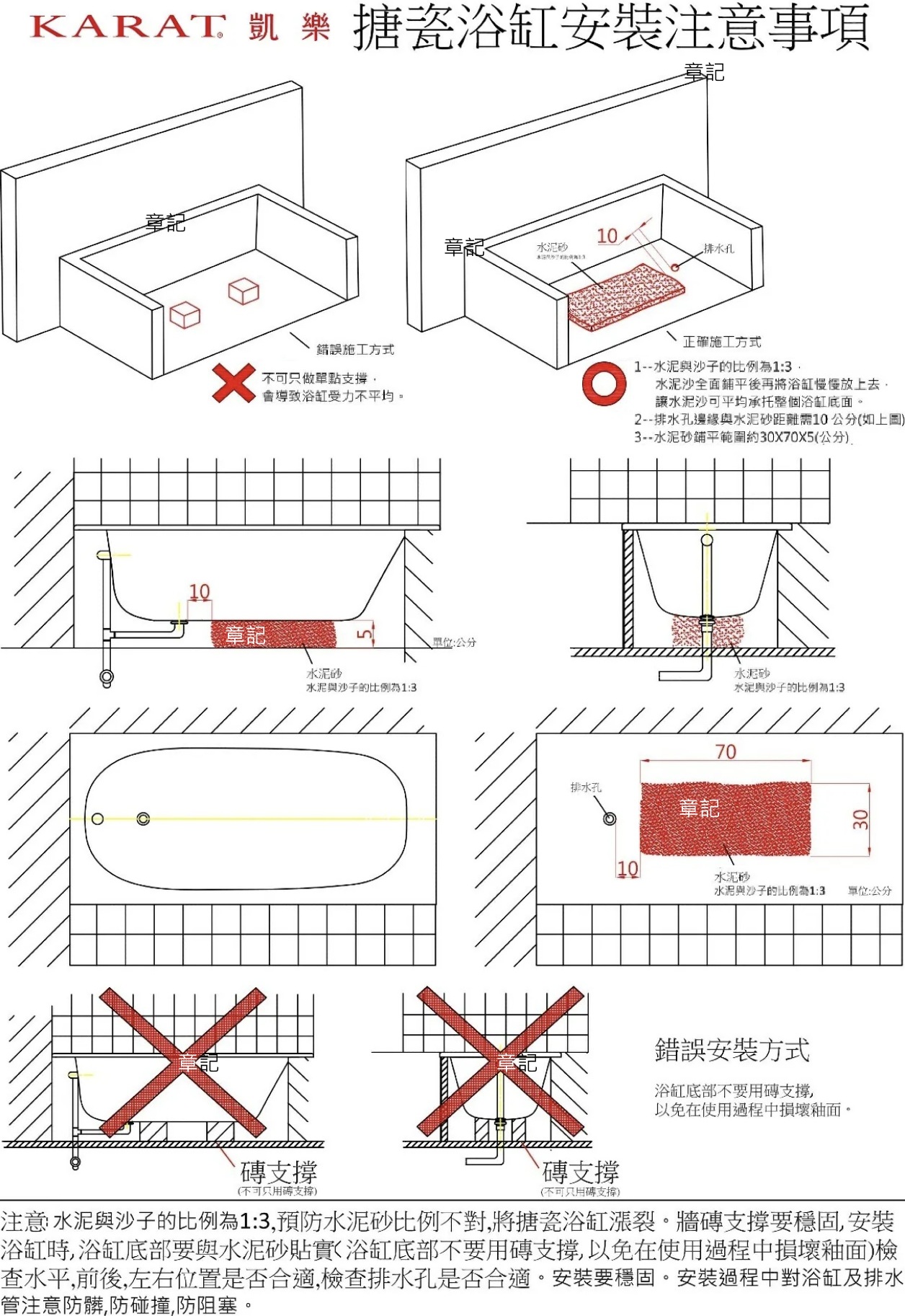 KARAT 琺瑯鋼板浴缸.搪瓷浴缸(170cm) V70A 尺寸圖