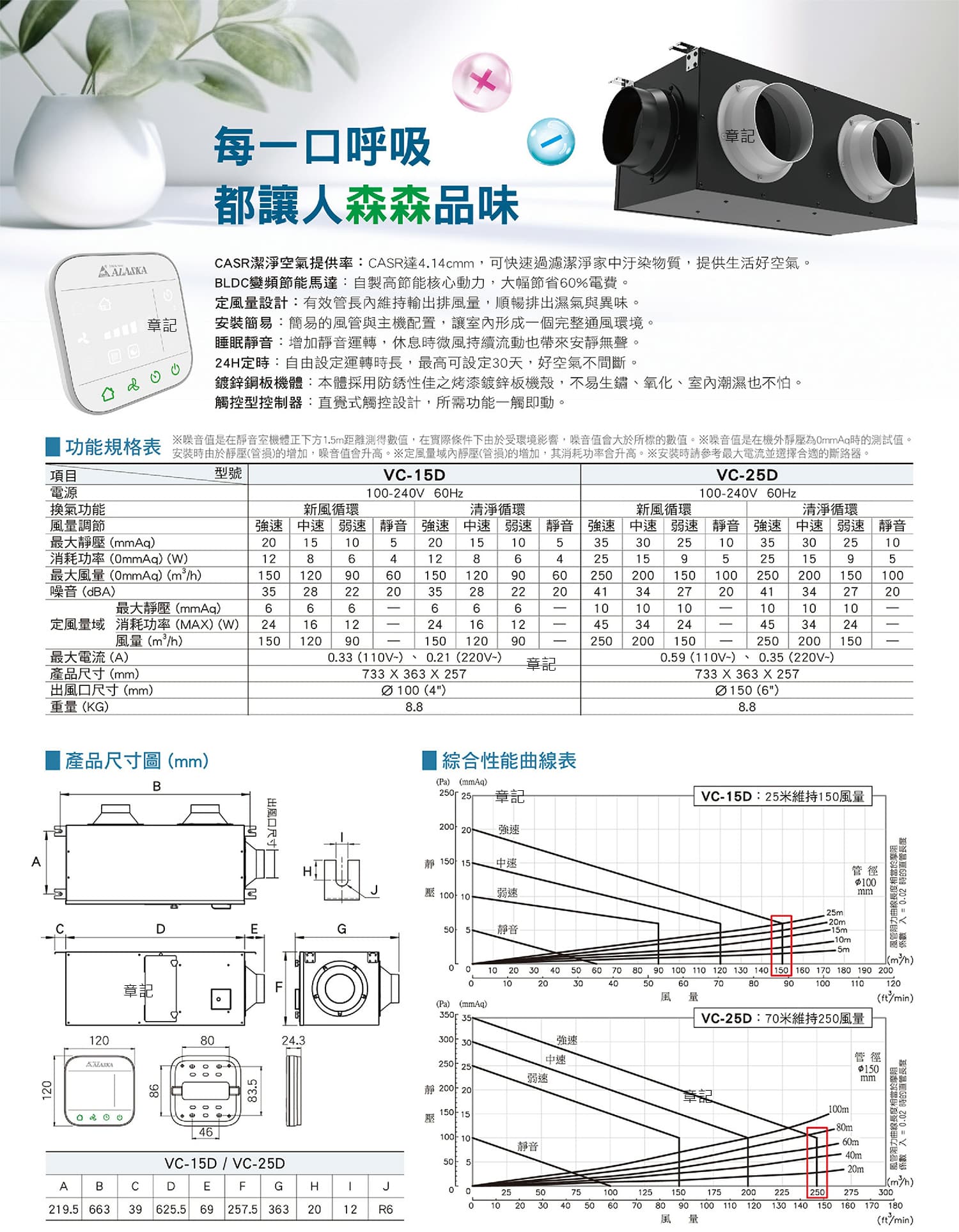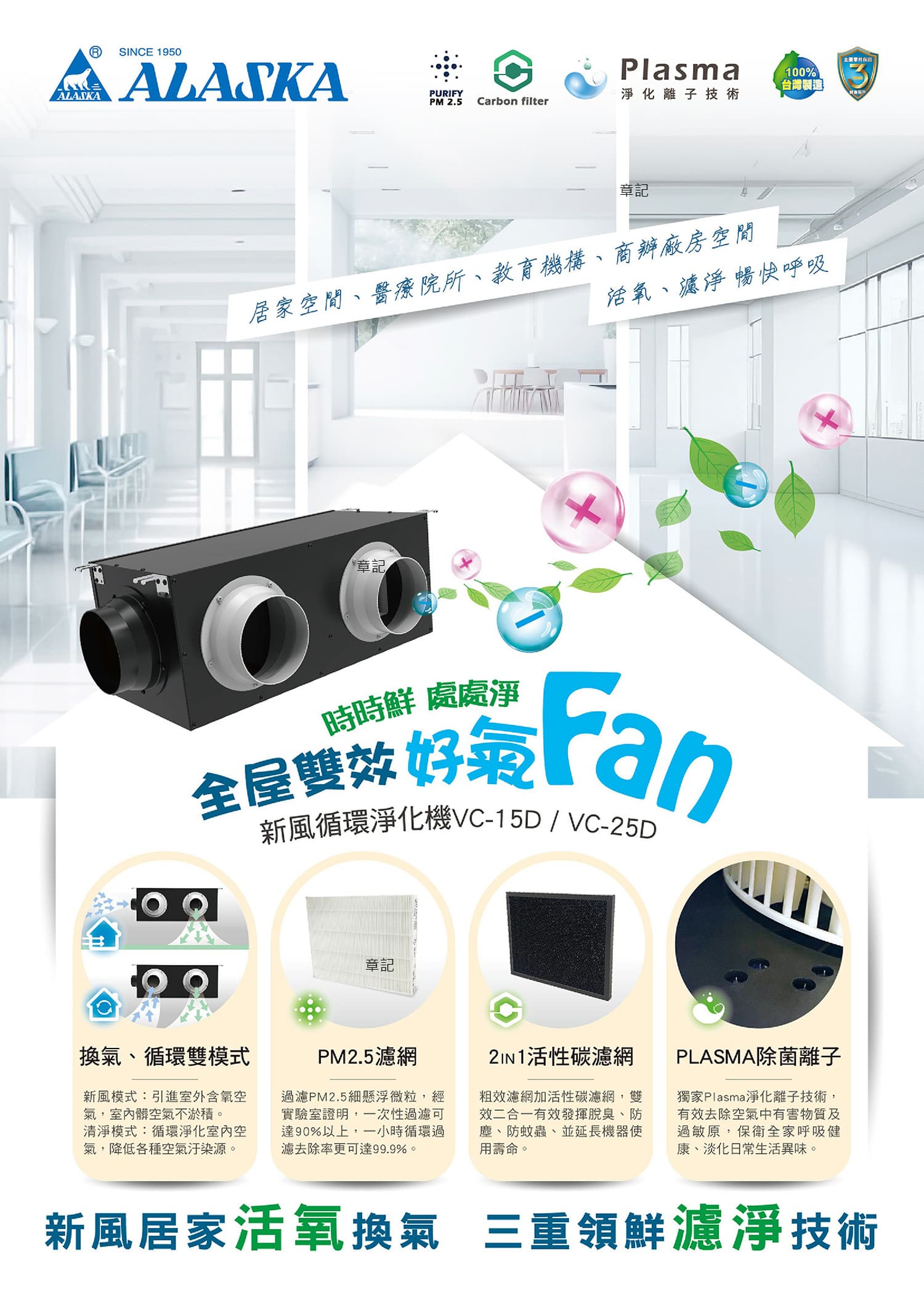 阿拉斯加(ALASKA)新風循環淨化機 VC-15D