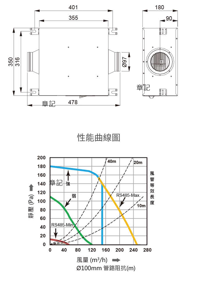 台達(DELTA) 全室淨化新風機 VDB36ACXT2-F 尺寸圖