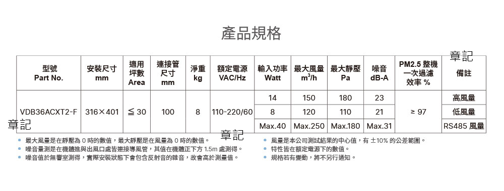 台達(DELTA) 全室淨化新風機 VDB36ACXT2-F