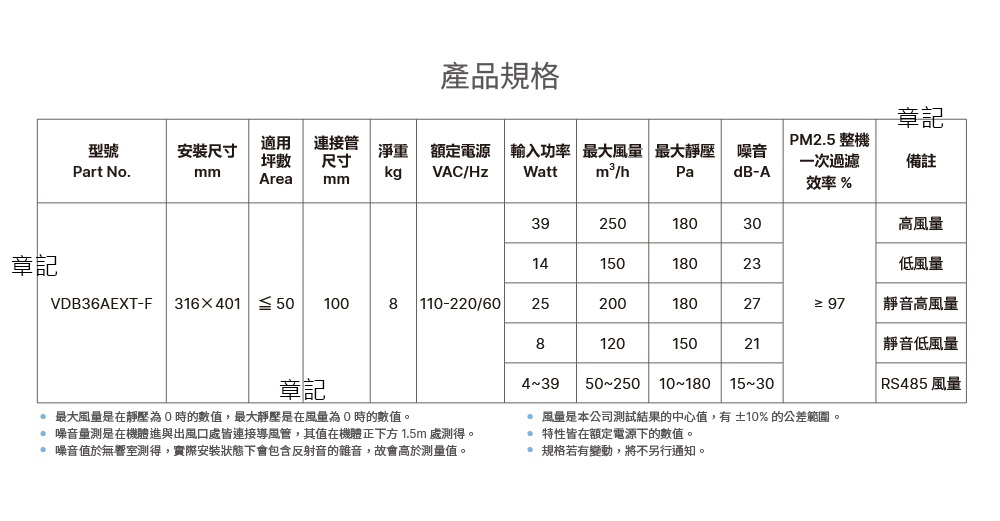 台達(DELTA) 全室淨化新風機 VDB36AEXT-F