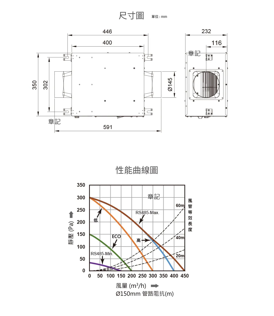 台達(DELTA) 全室淨化新風機 VDB40AGXT-F 尺寸圖