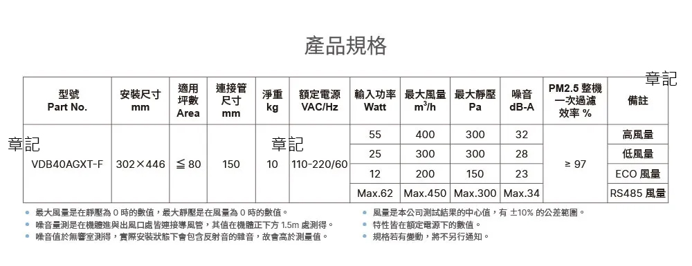 台達(DELTA) 全室淨化新風機 VDB40AGXT-F