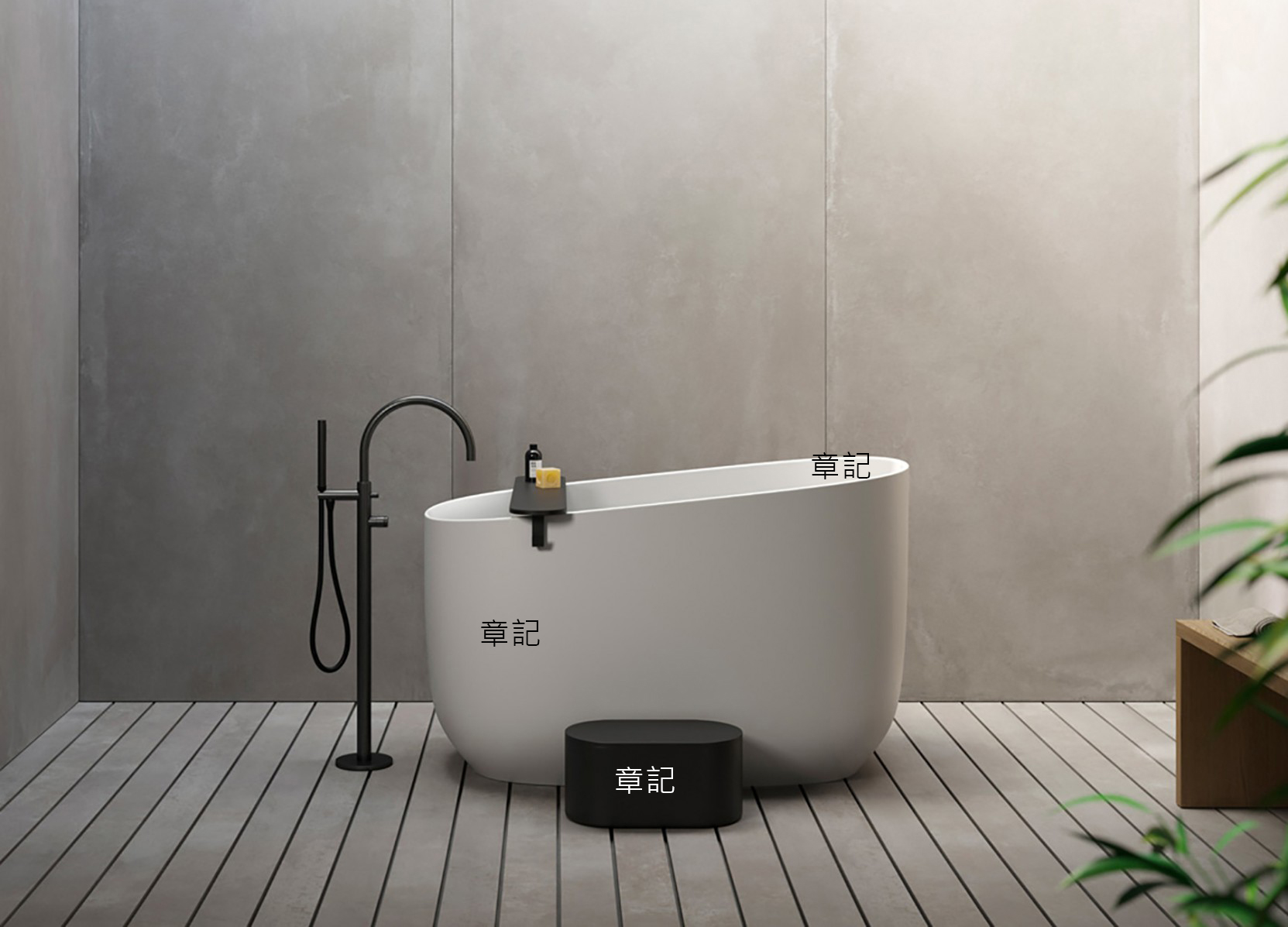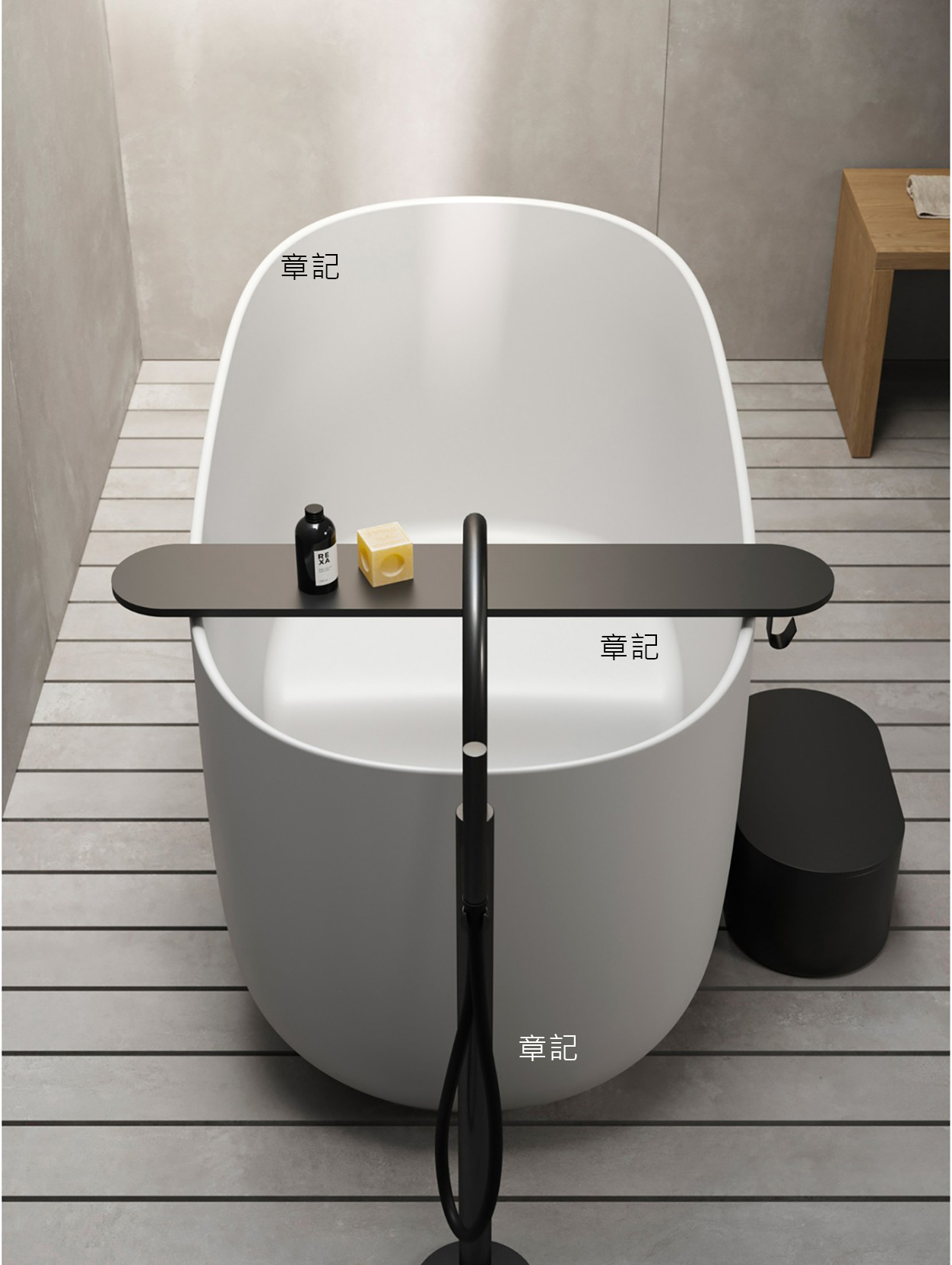 本產品僅為浴缸本身,並 "不" 含照片中示範用之 黑色浴缸置物平台、黑色置物椅凳、黑色落地水龍頭。