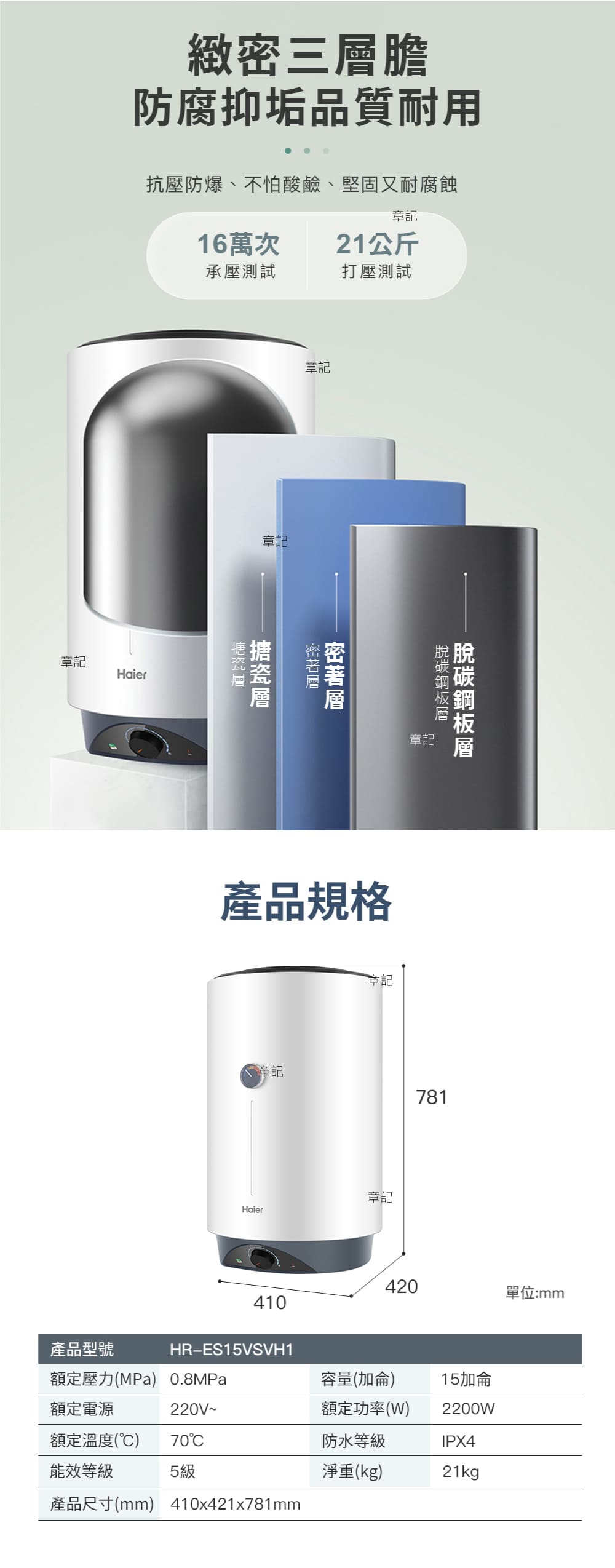 Haier海爾 15加侖儲熱式電熱水器 VH1